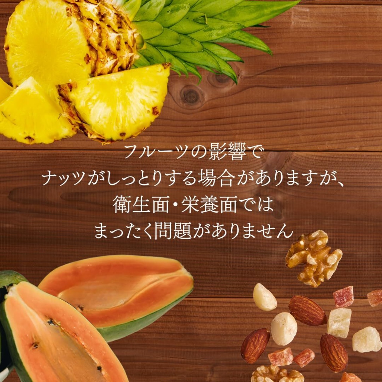 【ナッツ×ドライフルーツ】食塩不使用のナッツ3種と優しい甘さのドライフルーツ2種を組み合わせた自然派おやつで、毎日の食事をちょっといい物で、健康に。(アーモンド・くるみ・マカデミアナッツ・パイン・パパイヤ)