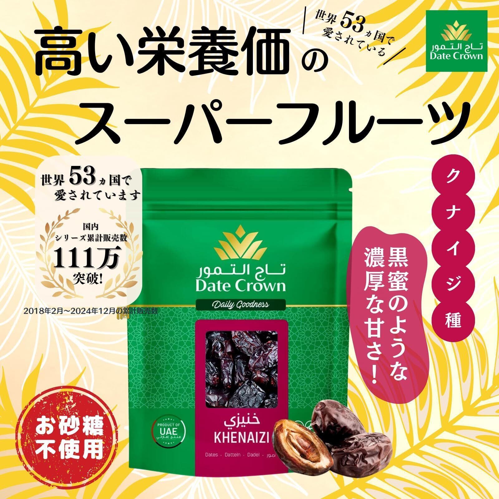 【まさにデーツクラウン(デーツの王冠)】Date Crown(デーツクラウン)はアラブ王国御用達のブランドで、世界48か国で親しまれている世界最大のデーツブランドの一つです。アルフォア社(UAE) のインターナショナルブランドが、UAE産の完熟デーツの中でもより高い基準をクリアした高品質なデーツを日本にお届けしています。