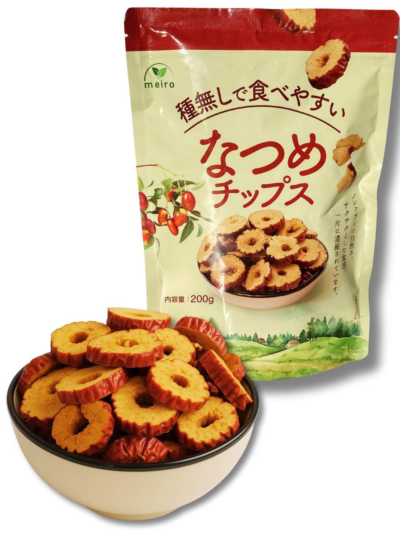 【増量・200g】 なつめ チップス 種無し ノンフライ 砂糖不使用 無農薬 無添加 ナツメチップ 乾燥なつめ ドライフルーツ 赤い ドライナツメ