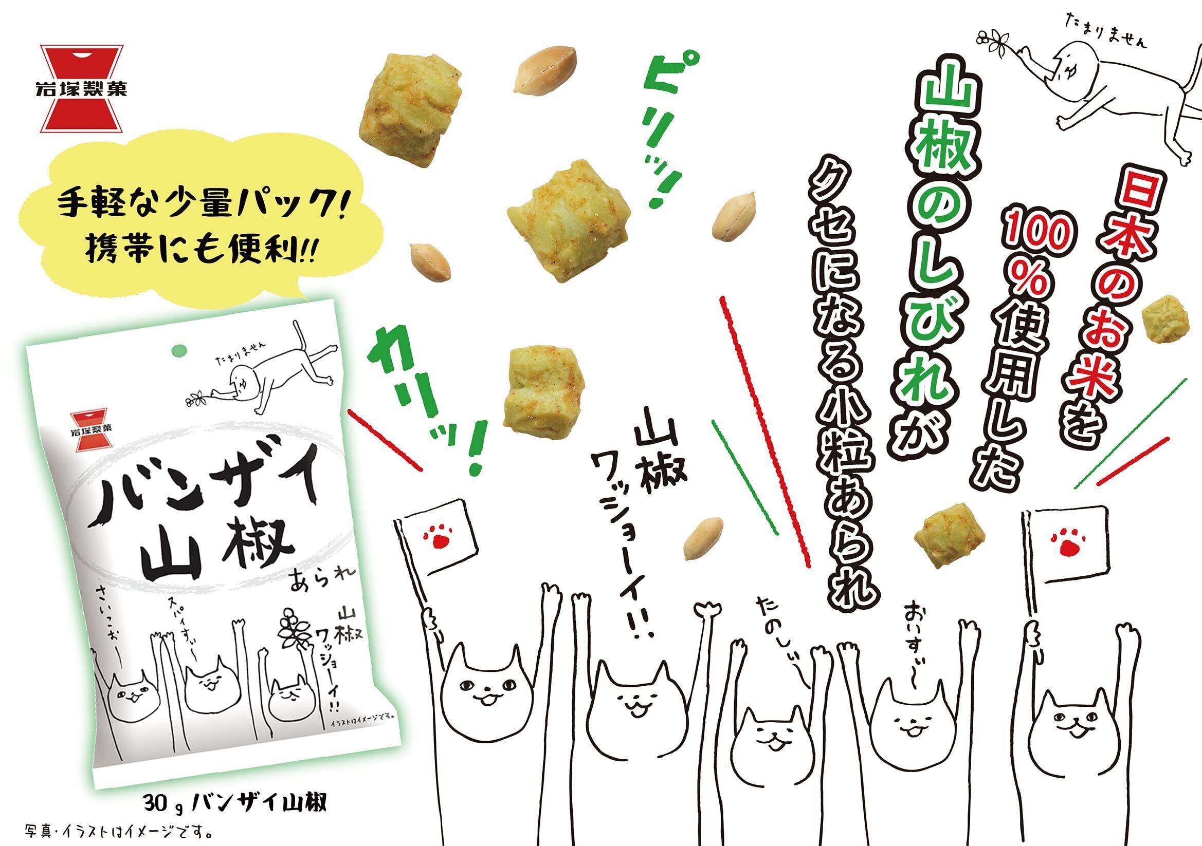 国産米100%の生地に枝豆ペーストを練り込んだ小粒あられ。山椒と旨味が入った醤油シーズニングで味付けした、パッケージからは想像できないほど本格的な仕上がりになっています。小粒のあられは丁寧に煎ることで独特のカリっとした食感を実現しています。ゆるいパッケージと個装で便利な食べきりサイズとなっています。 原材料・成分 水稲もち米(国産)、植物油脂、枝豆ペースト、激辛山椒風味シーズニング/調味料(アミノ酸等)、植物レシチン、香料、クチナシ色素、香辛料抽出物、(一部に小麦・乳成分・ごま・大豆・鶏肉・豚肉・魚醤(魚介類)を含む)
