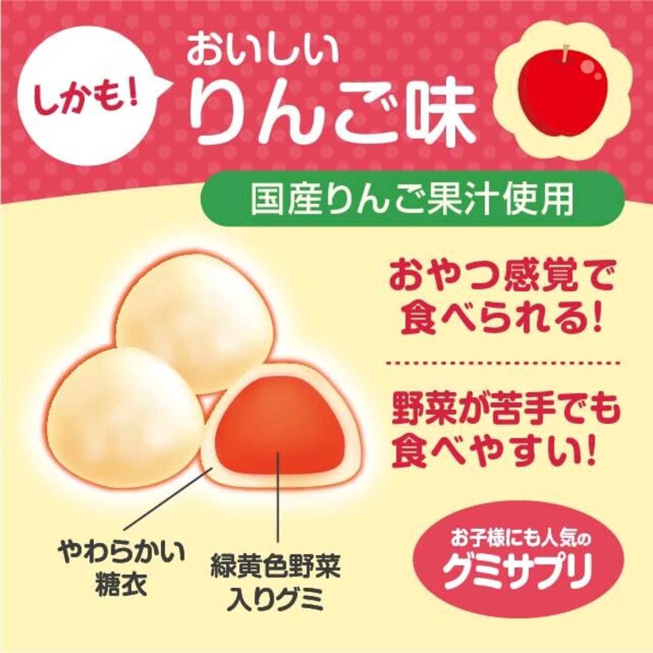 3時のサプリ 緑黄色野菜グミ 191g 日本製 野菜 グミ こども 子供 子ども 栄養補助 嫌い 野菜不足 美味しい おいしい りんご味 ビタミンC β-カロテン ビタミンB6 ビタミンD ビタミンE 健康食品 栄養機能食品 サプリ (1袋)