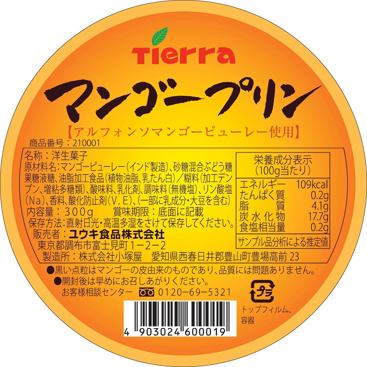 ユウキ マンゴープリン 300g【常温保存可/業務用】