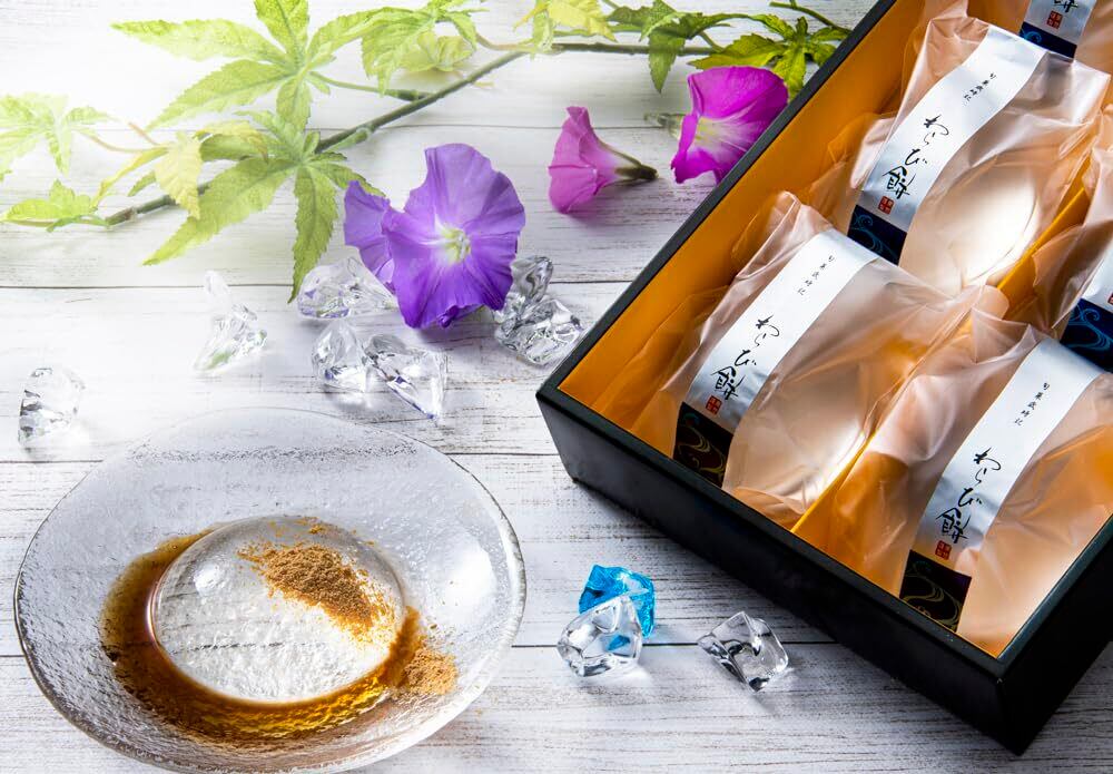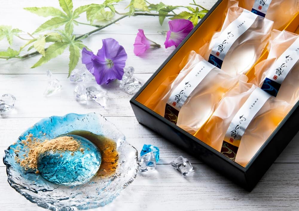 【透明な贅沢、「水の精霊わらび餅」 ─ 四季を彩る上品な贈り物】 透き通る美しさと、しずくのようにとろける繊細な口当たり。 甘さ控えめで上品なお味で四季を通じて特別なひとときを届ける贈り物です。 つるるん、ぷるん、口に入れるとふわっと消えていくような食感と可愛い見た目が、お子様にも、高齢者にも喜ばれています。 特製きなこが黒蜜と自然に混じり合い、さっぱりしたわらび餅と相性が良くなるよう三位一体のハーモニーを意識しておつくりしました。 黒蜜はくどくないのに濃厚な甘みが感じられるように研究を重ねたオリジナルになります。 個包装、常温保管、日持ちがします。 お世話になった方への和菓子ギフト、母の日やお中元などの季節イベントなどで、贈る人も、受け取る人も笑顔になる、通年を通して愛される極上のギフト「水の精霊わらび餅」を、大切な方への贈り物にぜひどうぞ。