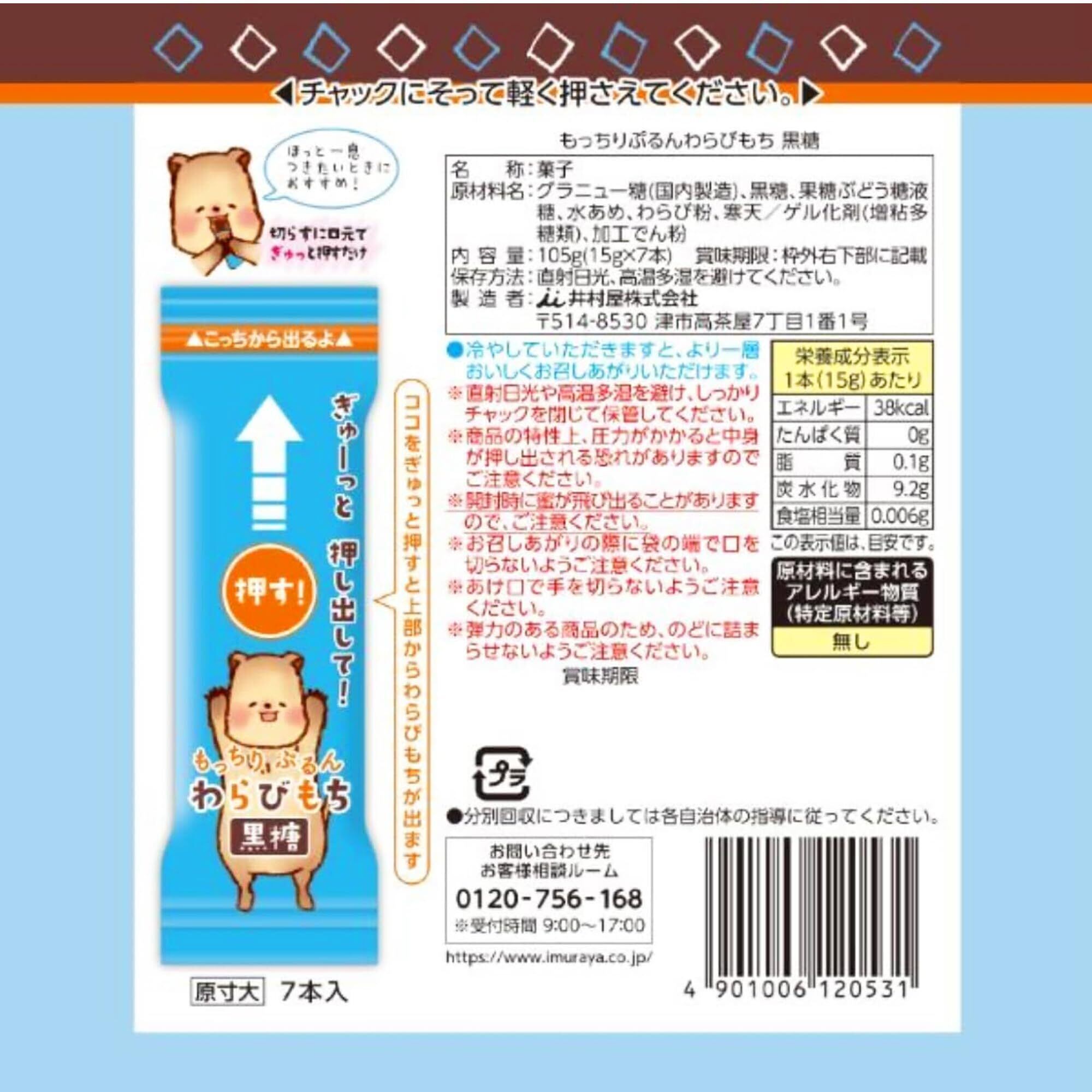 井村屋 もっちりぷるんわらびもち 黒糖 15g×7本