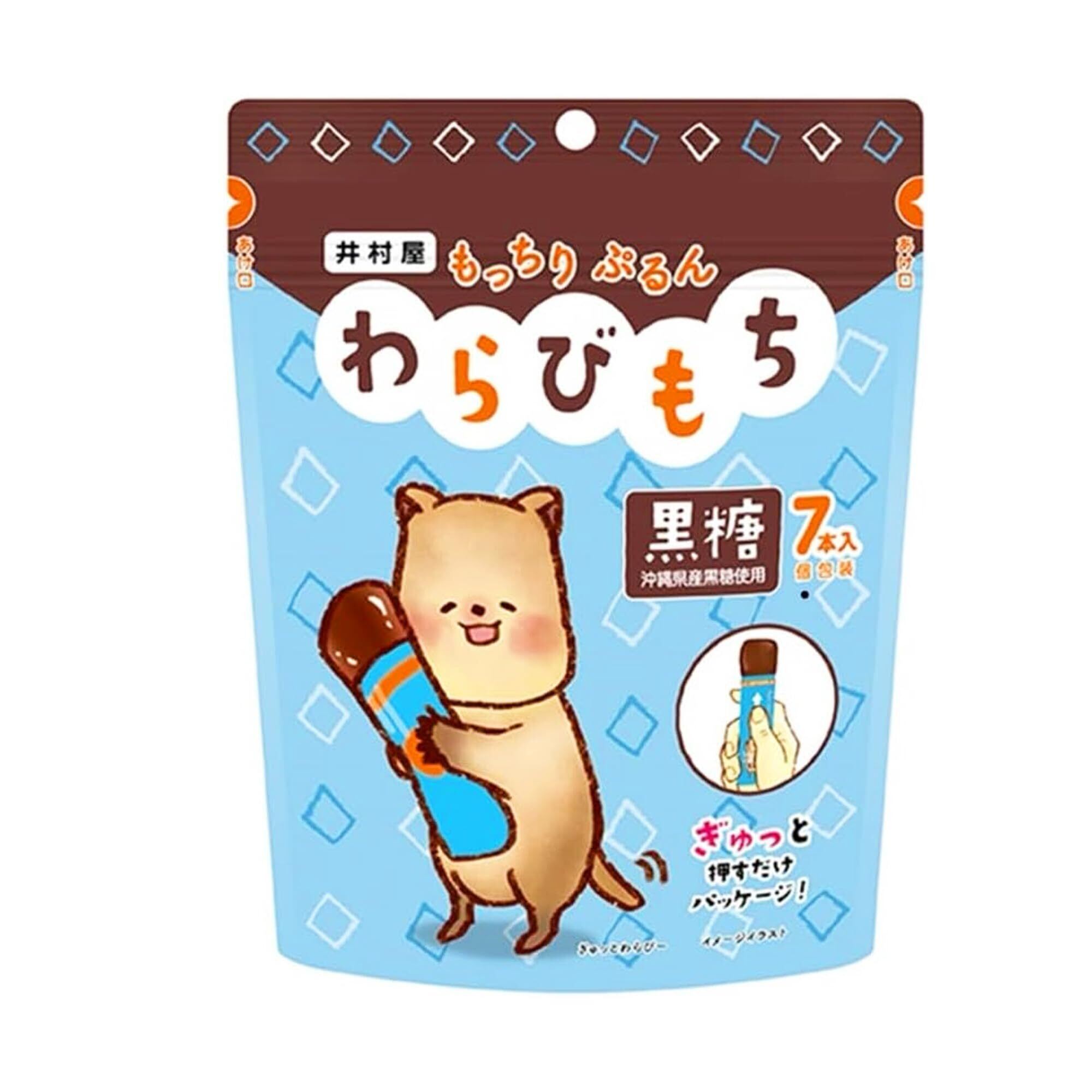 素材の風味をしっかり感じられるスティックタイプのわらびもちです。沖縄県産黒糖を使用し、黒糖の濃厚な風味とコクをお楽しみいただけます。「もっちりぷるん」とした食感に仕上げました。少しずつ手軽に食べられる15gの食べきりサイズ、みんなでシェアできる7本入です。常温保管できるため、買い置き菓子にも適しています。冷やしてもおいしくお召しあがりいただけます。商品中央部を押すだけで中身のわらびもちが出てくるパッケージを採用し、はさみや包丁を準備する事なくお召しあがりいただけます。