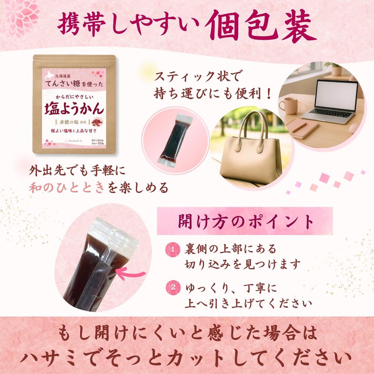 ウェルスイート 塩ようかん 羊羹 北海道小豆100%×てんさい糖 スティック個包装 ミニ ようかん 20g×10本