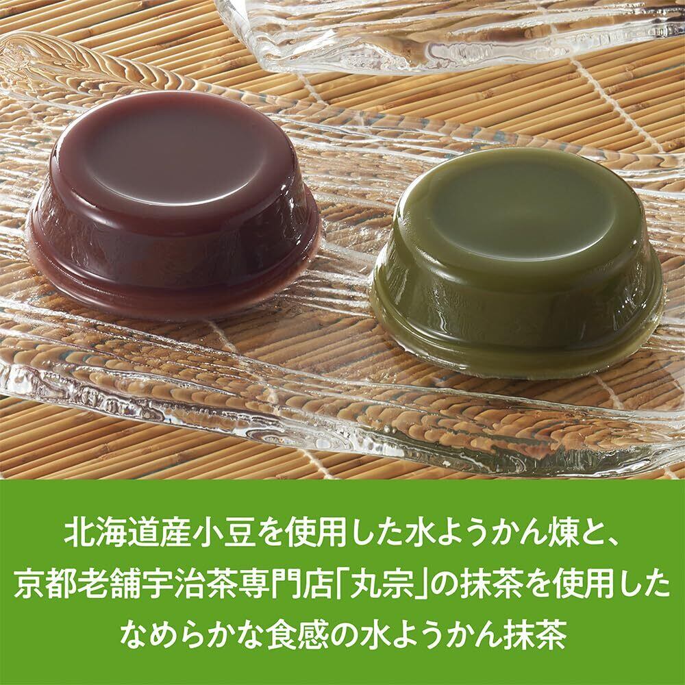 夏の定番和菓子である水ようかん2種(煉・抹茶)のアソートです。【煉】北海道産小豆を使用した、小豆の風味を感じられる水ようかんです。【抹茶】京都老舗宇治茶専門店「丸宗」の抹茶を使用し、風味豊かに仕上げました。どちらも口どけが良く、なめらかな食感です。カップは、密封性と開けやすさを両立させた「マジックトップ」を使用しています。紙製のトレイを使用することで、プラスチック使用量を削減し、環境にも貢献しています。常温保管できるため、買い置き菓子として便利です。風味豊かな涼味菓子で、ほっと一息つける時間をお楽しみください。