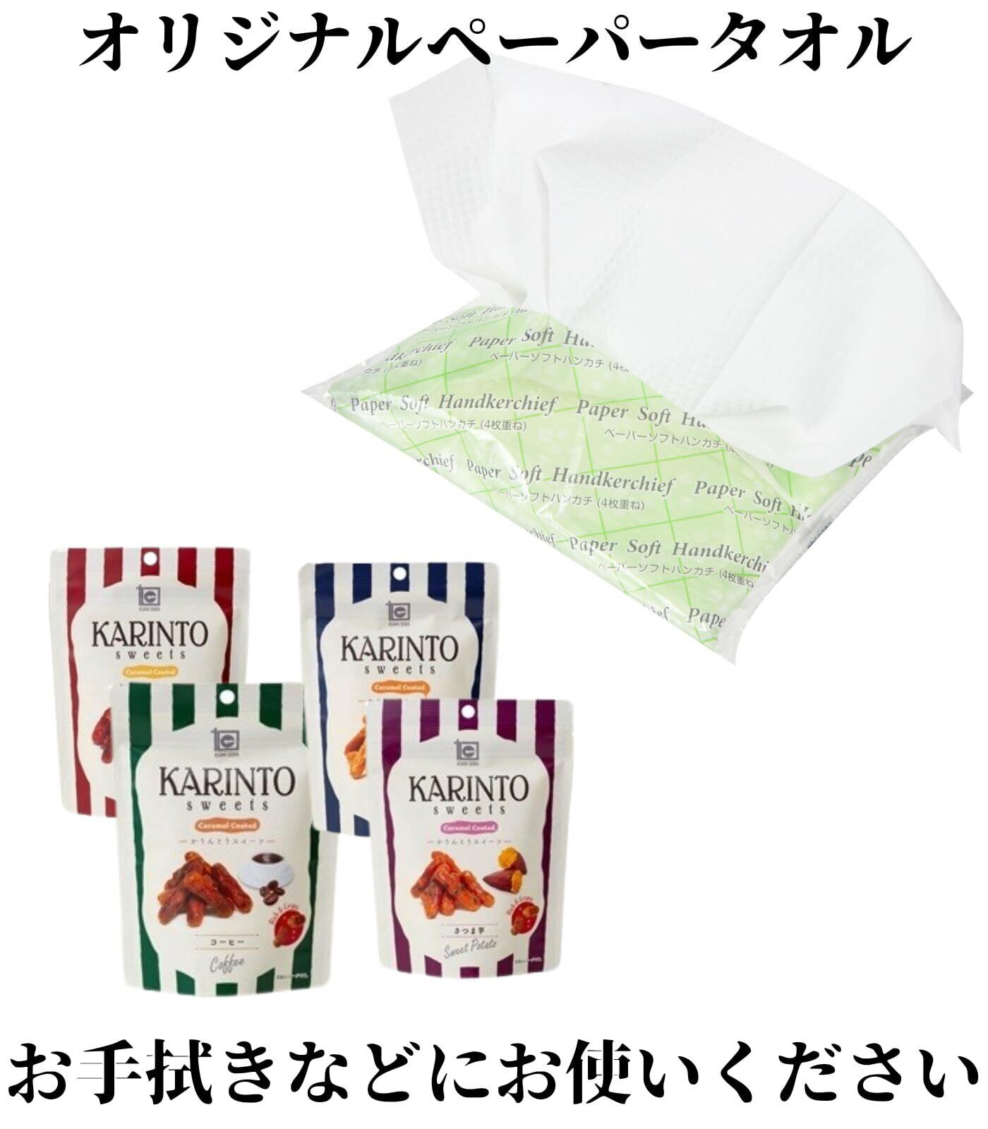 かりんとう キャラメルコーティングシリーズ 4種各2袋セット (キャラメル/コーヒー/さつまいも/蜂蜜黒糖 1袋35g) オリジナルペーパータオル(4枚重ね8枚入)
