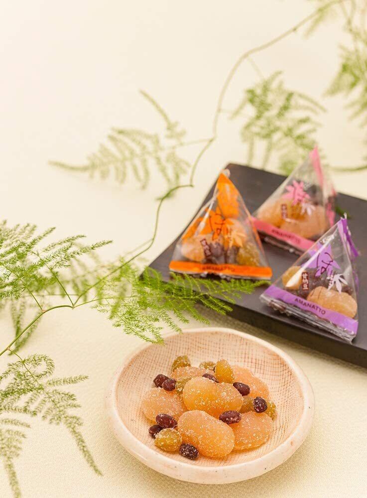 「白花豆」「小豆」「金時豆」「青えんどう豆」、人気の高い4種類の甘納豆をミックスにして、可愛らしい個包装で包みました。軟らかく、しっとりとした味わい。