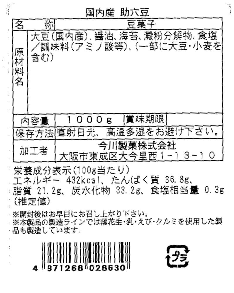 今川製菓 助六豆 磯豆 1kg しょうゆ味 海苔付き 味付け大豆 国産 煎り大豆 大容量 業務用 節分豆 大豆
