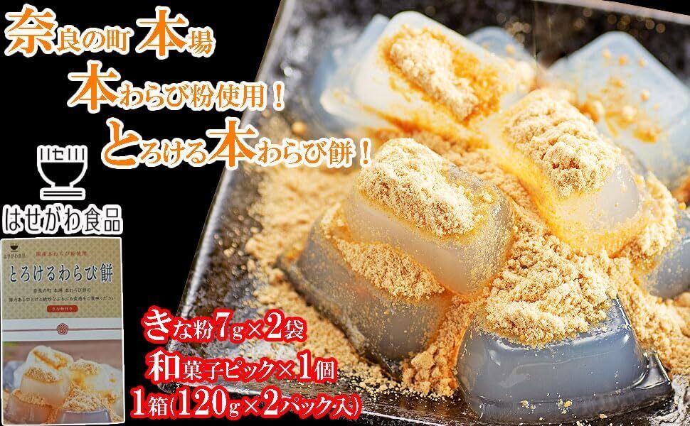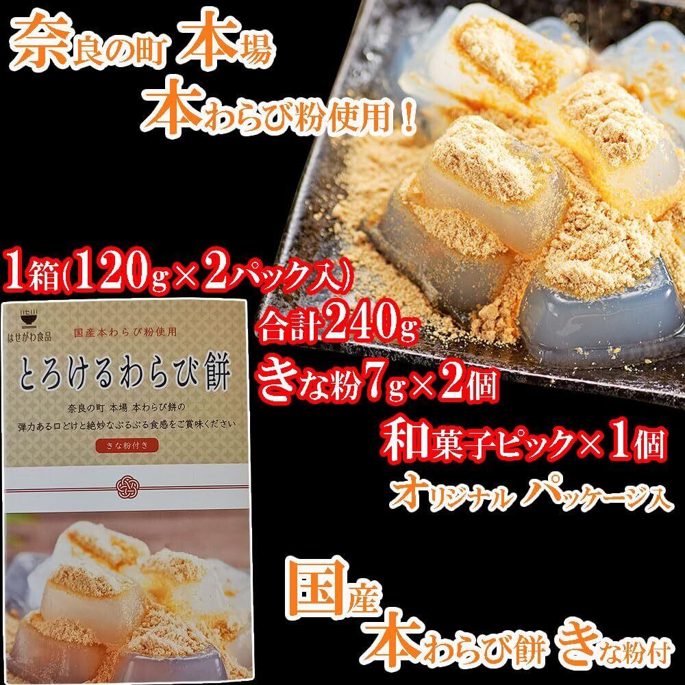 奈良の町 本場 とろける 本わらび餅 ギフト 国産 本わらび粉使用 わらび餅 お取り寄せ 人気 和菓子 わらびもち きな粉付き 母の日ギフト 父の日プレゼント はせがわ食品 (1箱 (120g×2袋))