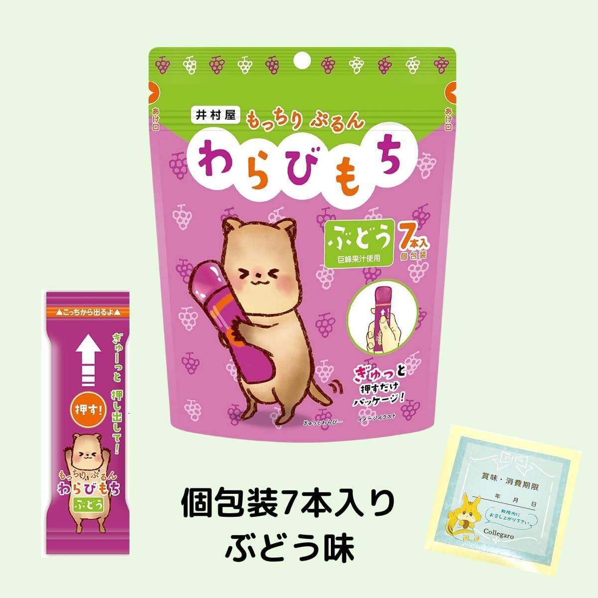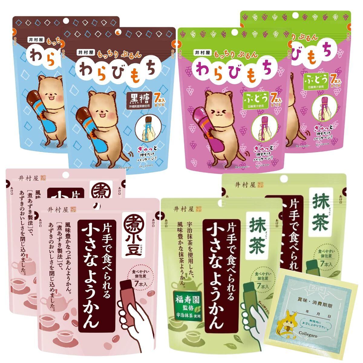 井村屋 わらびもち ようかん 4種 計 8袋 1袋7本入り アソート 黒糖 ぶどう 小さなようかん Collegaroステッカー (8袋)