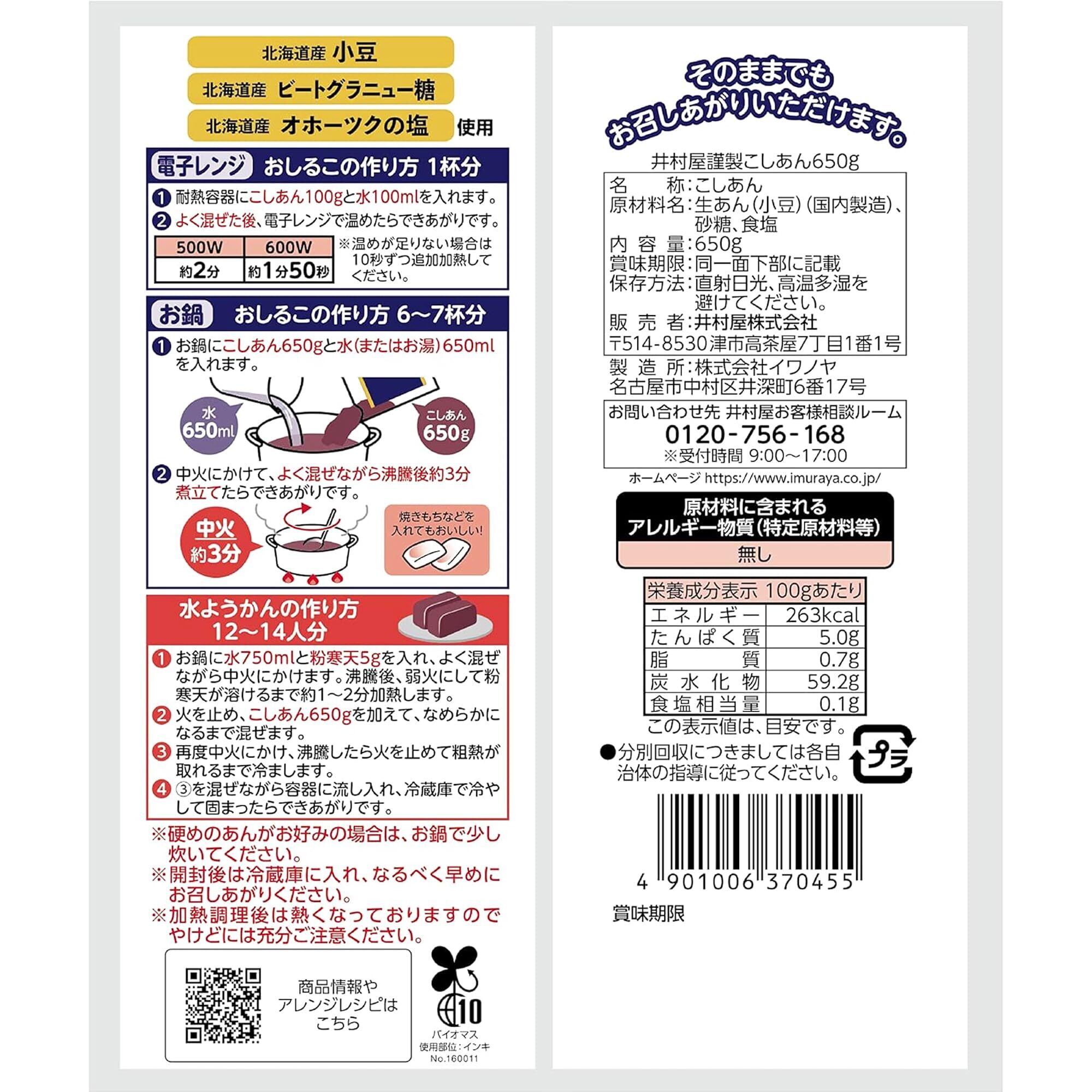 小豆、砂糖、塩の使用原料全てを北海道産に限定し、小豆の風味豊かなあんに仕上げています。様々な用途に使用できる汎用性のある硬さに仕上げています。ぜんざいやおはぎ等、お菓子作りをした際に合う塩味に調整しています。ハサミを使わずに手でまっすぐ開けられ、開け口を絞った使いやすい形態にしています。パッケージは環境に配慮した植物由来インキを使用したフィルムを採用しています。おしるこ6~7杯分のお徳用タイプのこしあんです。