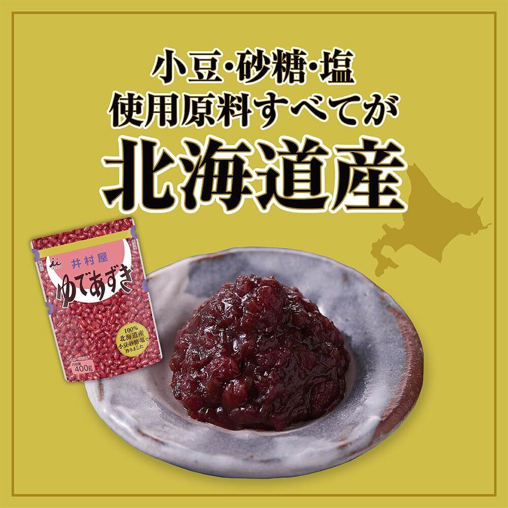 小豆、砂糖、塩の使用原料全てに北海道産を使用し、小豆の風味豊かなゆであずきです。井村屋で60年間培ってきたゆであずきの製法を活かし、粒感がありながらも適度なあんの出た使いやすい性状に仕上げています。パッケージは、使い勝手の良いパウチタイプです。ぜんざいやお菓子作り、トーストのトッピングなど、様々なシーンでお使いいただけます。