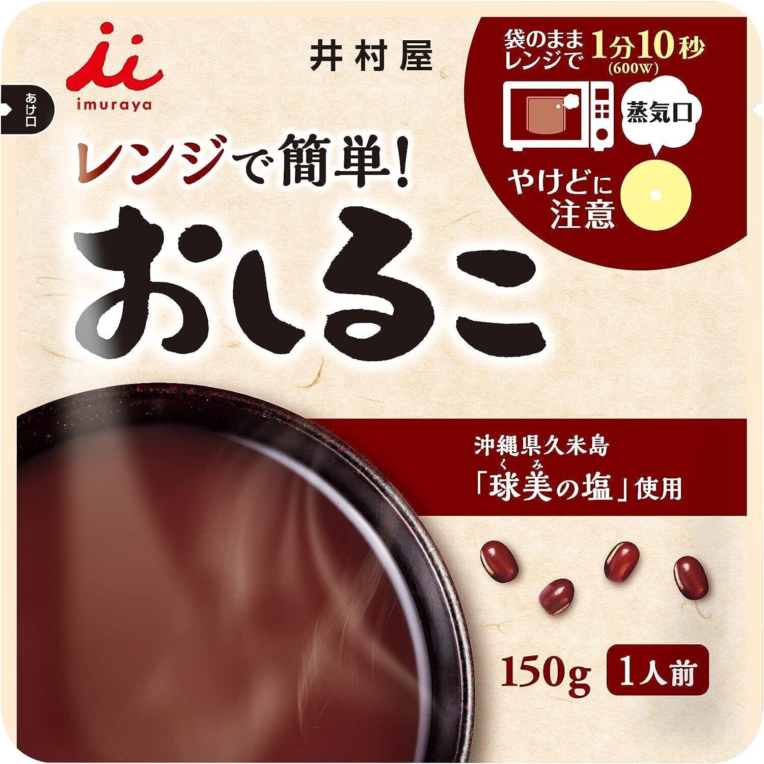 レンジで簡単1分10秒! ほっとひといきつける時間を提供します。 グラニュー糖と上白糖をブレンドし、キレの良い甘さとコクのある味に仕上げました。 小豆の風味を引き出す、まろやかな塩味が特徴の沖縄県久米島「球美の塩」使用。 600w1分10秒で温かいおしるこが楽しめます。通常通り湯煎もできます。