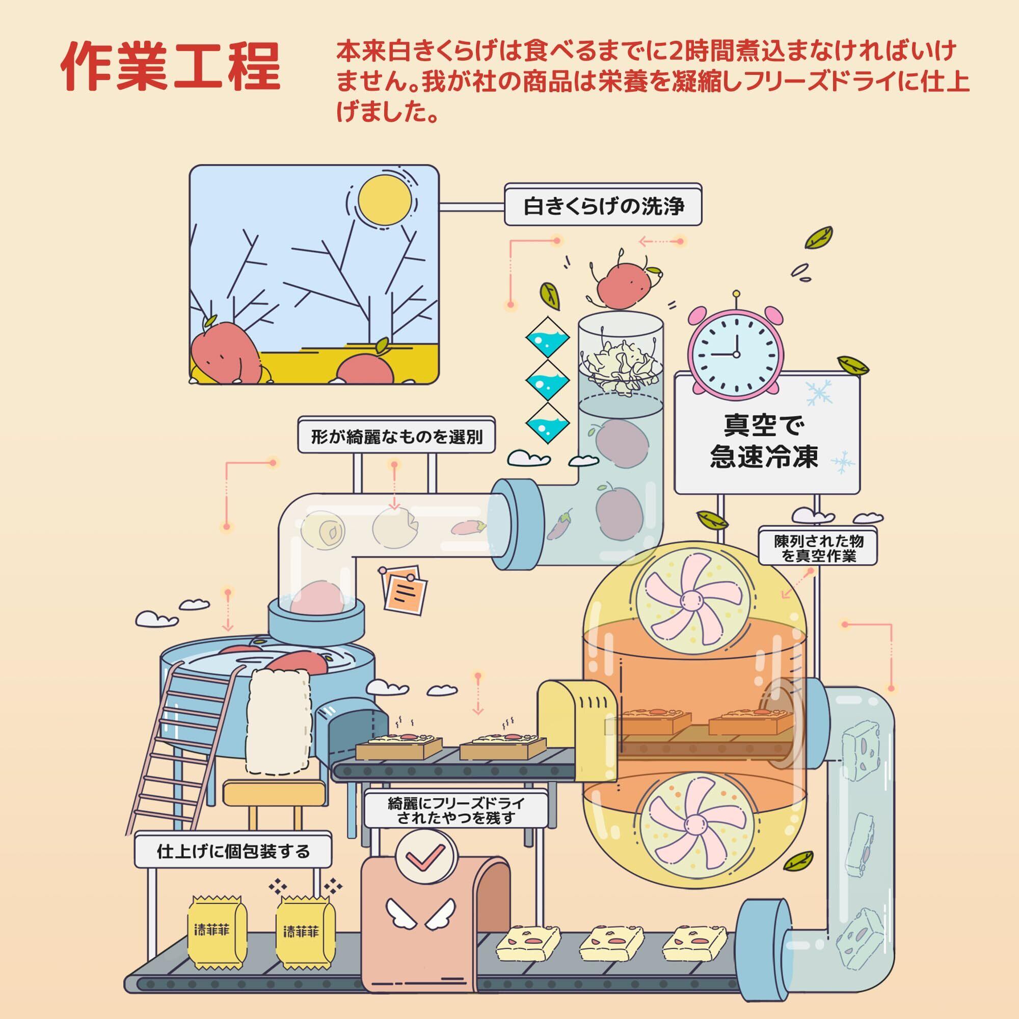 【フリーズドライ加工】 素材は厳選された良質な白きくらげ・蘭州のゆり根・湖南省湘潭県のハスの実・寧夏のクコの実・若羌のナツメ・南寧市の氷砂糖を使用しています。本来白きくらげは食べるまでに2時間煮込まなければいけません。我が社の商品は栄養を凝縮しフリーズドライに仕上げました。