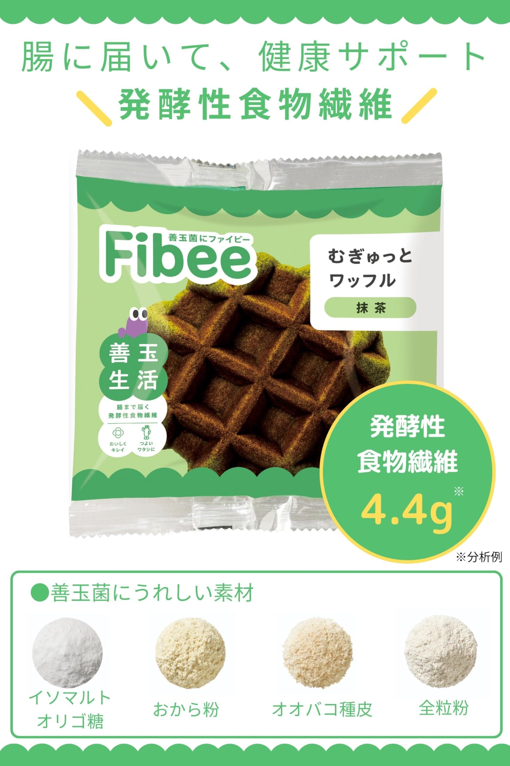 ミツカン Fibee むぎゅっとワッフル 抹茶 (発酵性食物繊維 ヘルシー おから 腹持ち◎) 食物繊維 小腹満たし 日持ち ファイビー 1個×4個