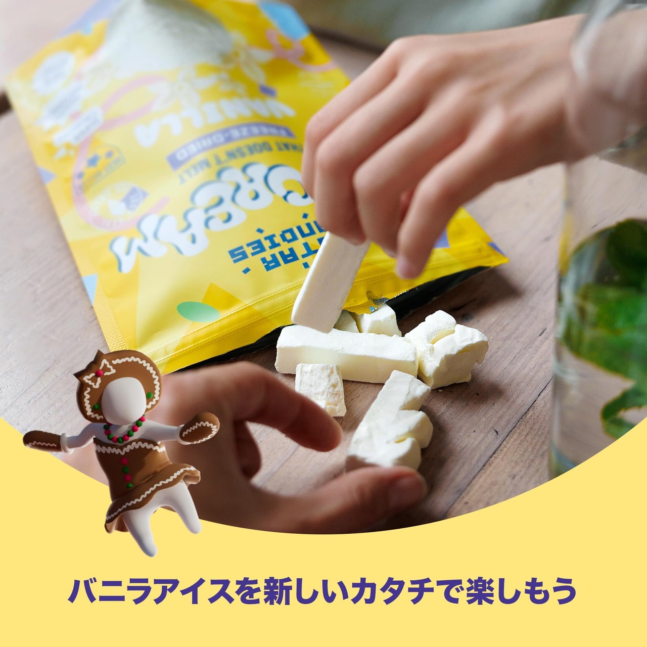 サクサク食感の芳醇バニラアイス。フリーズドライ製法により、バニラビーンズの豊かな香りとまろやかな甘さをぎゅっと閉じ込めました。軽やかな食感で、お口の中でふわっと溶ける新感覚スイーツです。