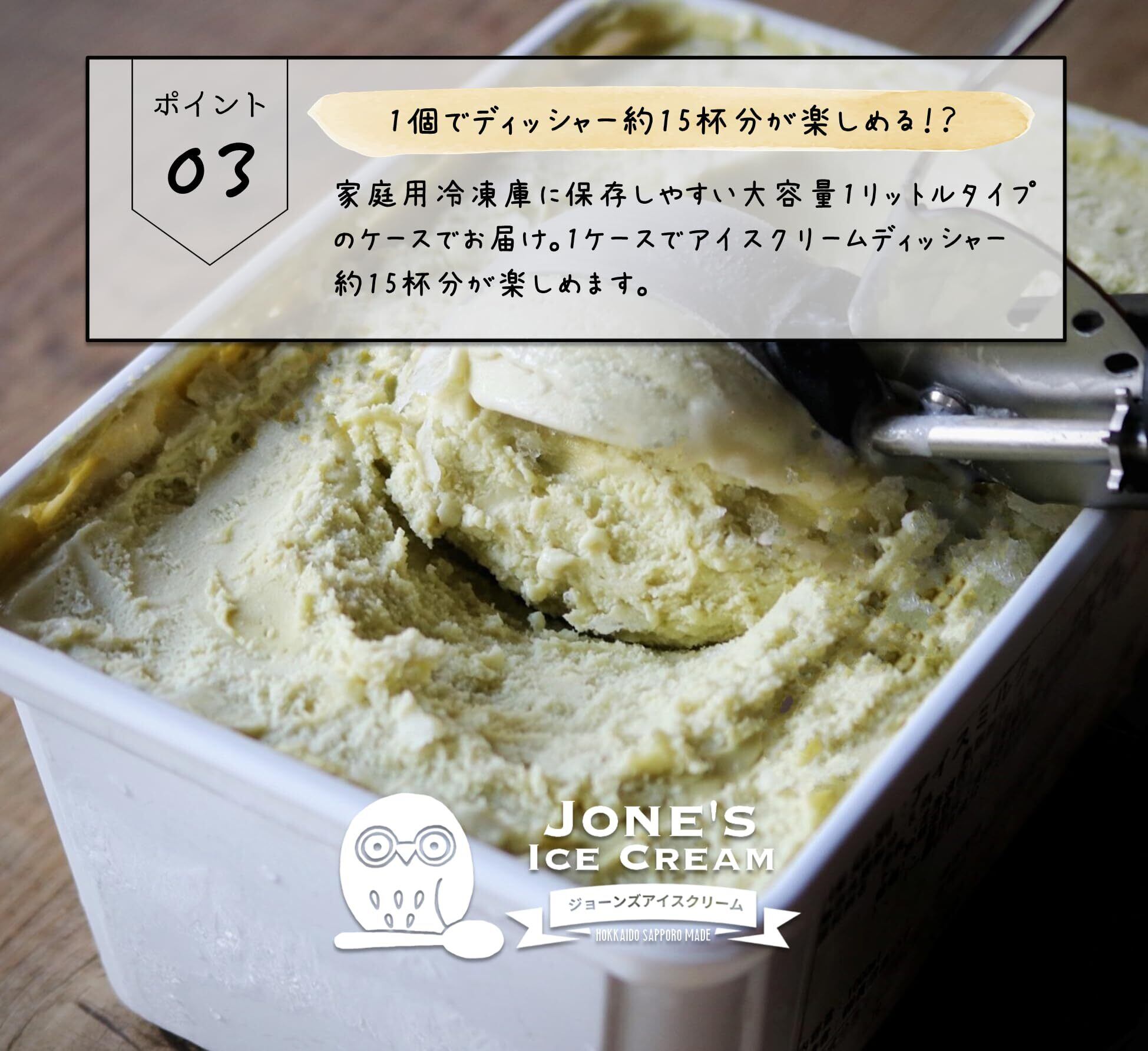 ジョーンズアイスクリームはひんやりなめらかタイプのアイスクリーム。北海道生乳・水・最高級アイス製造マシンのカルピジャーニ製で作るこだわりのアイスクリームです。