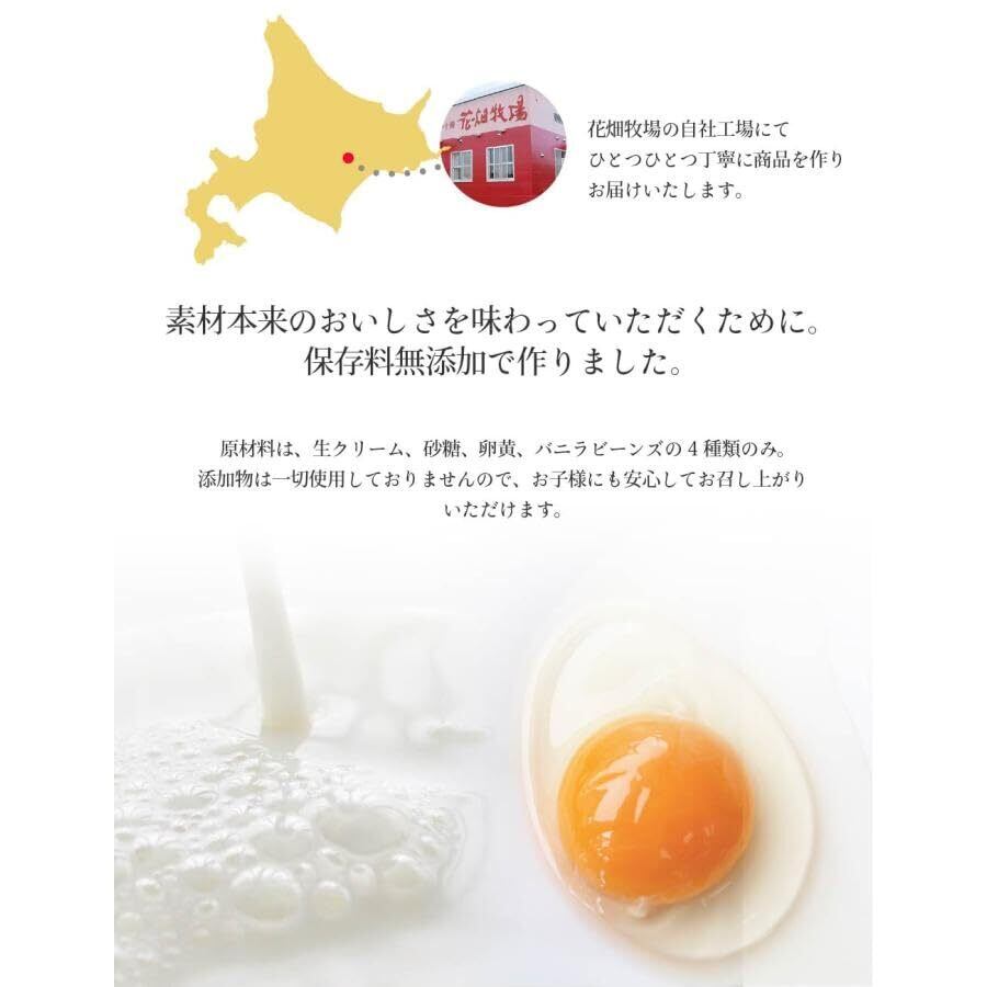 原材料名:クリーム(国内製造)、砂糖、加糖卵黄(卵黄、砂糖)、バニラビーンズ/香料、(一部に卵・乳成分を含む)