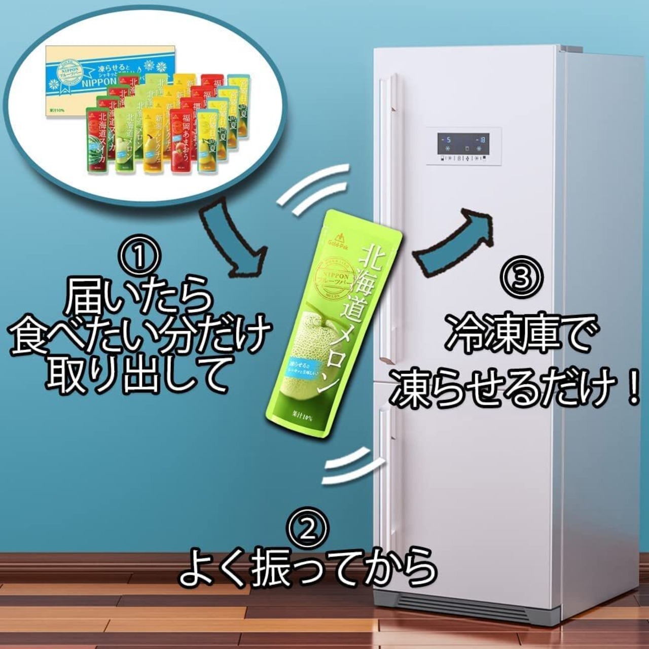 国産フルーツを使用した、季節限定のデザートタイプの飲料。 ・10%果汁入り飲料。 ・凍らせてもしっかり果汁の濃い味が最後まで味わえます。 ・盛夏の涼菓デザートとして、お子様からご年配の方まで幅広くおすすめします。 ・ご家庭の冷凍庫にストックするのにちょうど良いサイズです。