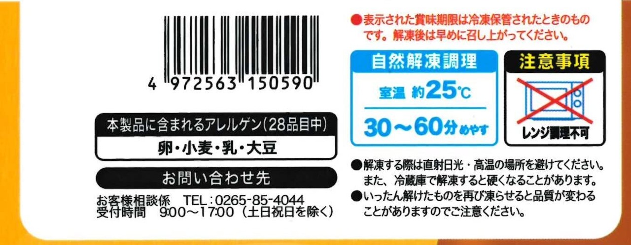 ミックス粉(小麦粉、砂糖、ショートニング、粉末油脂、その他)(国内製造)、食用油脂、チョコレートコーチング(植物油脂、砂糖、乳糖、きなこ(大豆を含む)、その他)、鶏卵、砂糖、きなこ/加工デンプン、ベーキングパウダー、乳化剤、香料
