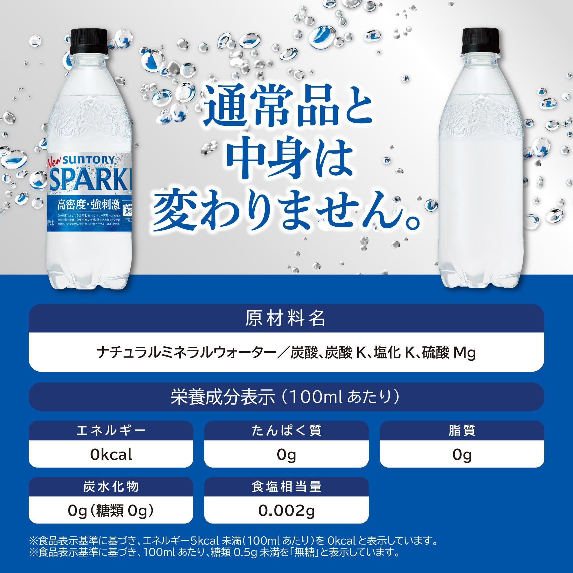 サントリー 天然水 SPARKLING 500ml×24本は、サントリー天然水×独自のミネラル設計による「高密度・強刺激」な強炭酸水!清冽なおいしさのサントリー天然水を使用しております。天然水史上最高レベルのガス圧の強炭酸に加えて、独自のミネラル調整により、大量のきめ細かい泡が喉に流れ込む爽快な強刺激を実現。※飲用時ガス圧は流通条件により変わる可能性があります。ミネラル量の調整により、割元の酒の香りを引き立てて美味しくする、直接飲んでも割って飲んでもおいしい強炭酸水。仕事中や家事の合間のリフレッシュシーン、お風呂上りなどスカッしたい水分補給シーン、お酒の割材シーンなどでどうぞ。