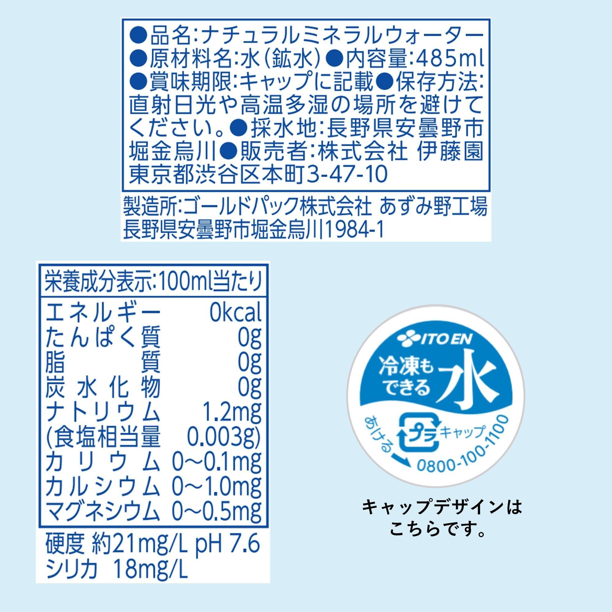 「 伊藤園 天然水」 ラベルレス 485ml×24本 軟水 ナチュラルミネラルウォーター 冷凍兼用ボトル