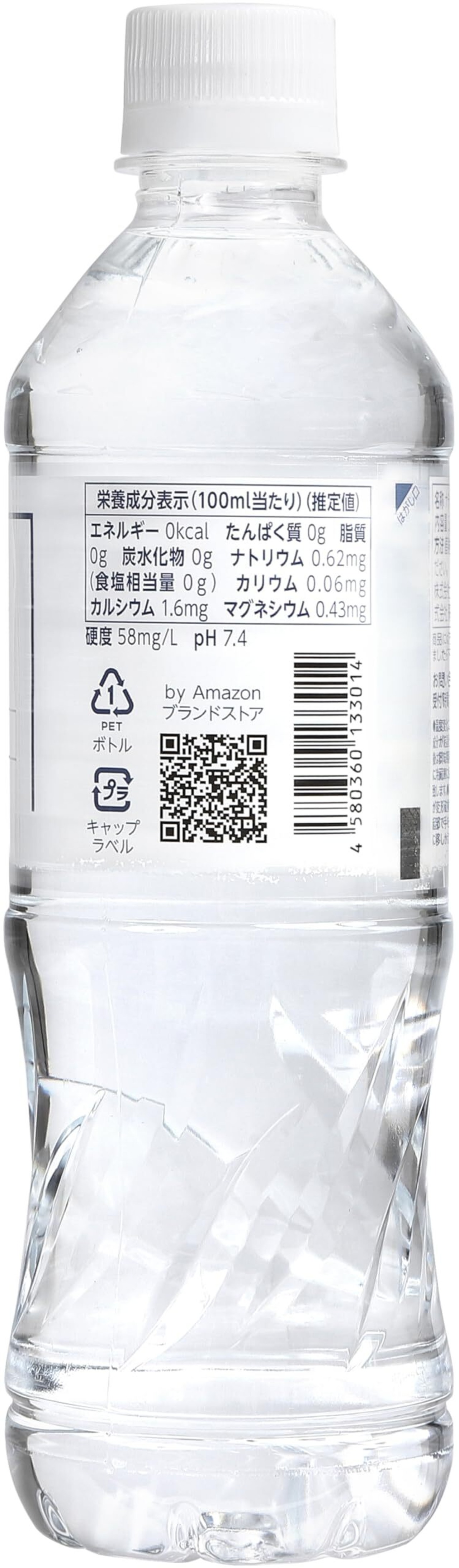 栄養成分表示(100ml当たり) (推定値)●エネルギー:0kcal●たんぱく質、脂質、炭水化物:0g ●ナトリウム:0.62mg(食塩相当量:0g)●カリウム :0.06mg●カルシウム:1.6mg●マグネシウム:0.43mg ●硬度:58mg/L●pH:7.4