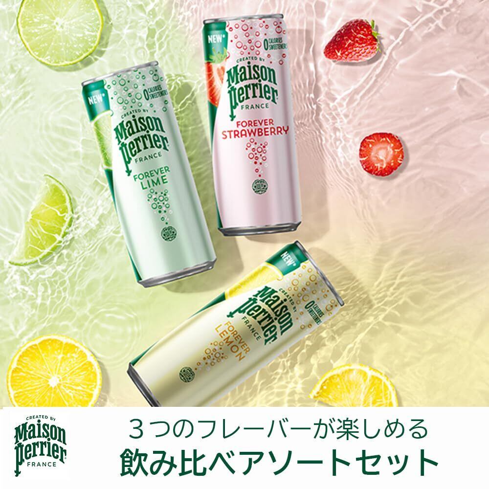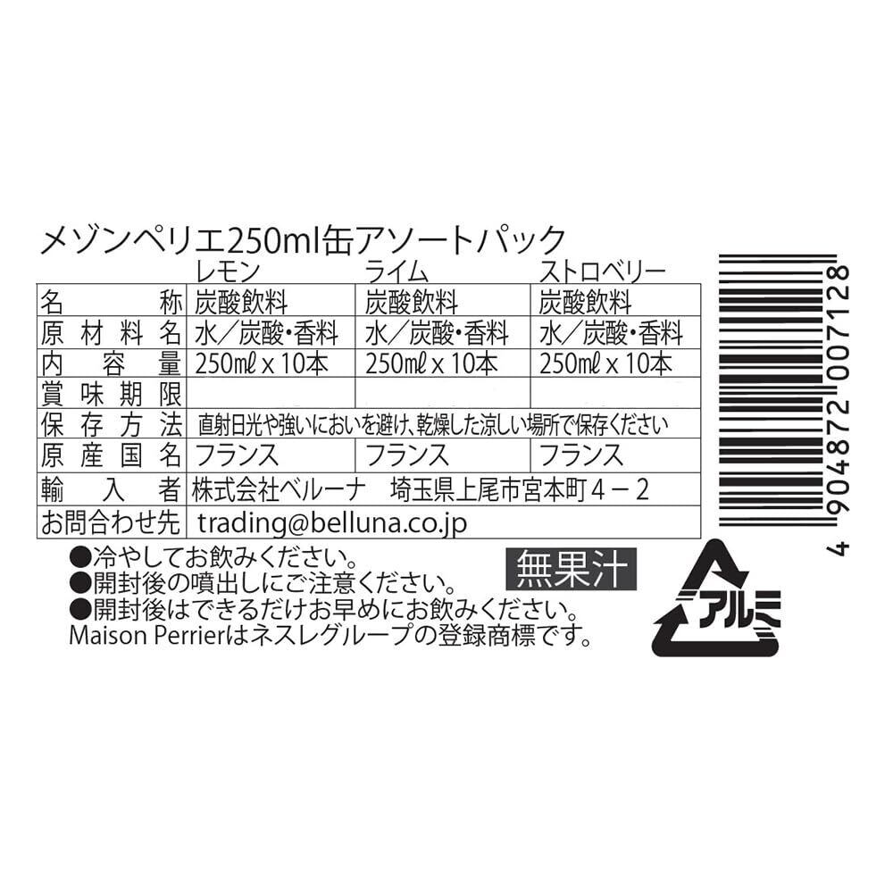 メゾンペリエ(Maison Perrier) フレーバー炭酸水 レモン ライム ストロベリー 3種アソート缶 250mlx30本(直輸入品) フランス産