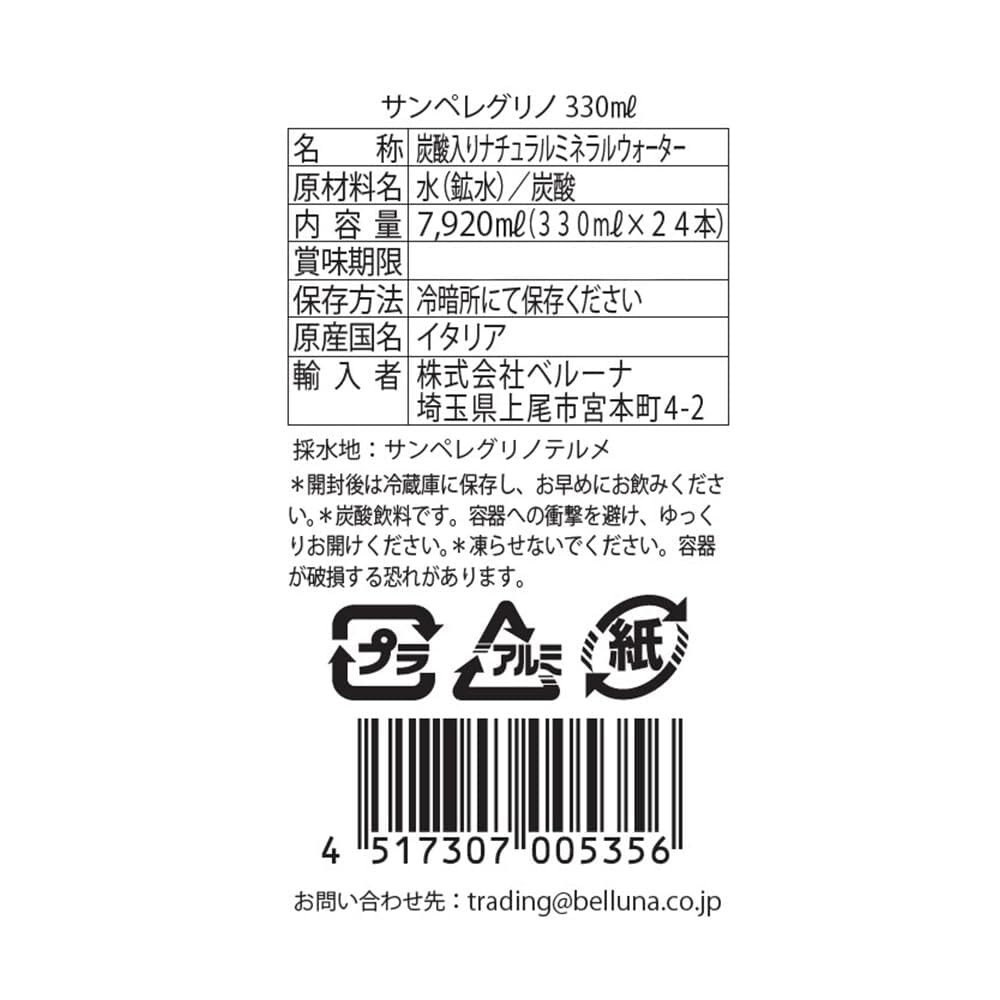 サンペレグリノ (S.PELLEGRINO) 炭酸水 缶 330ml [直輸入品] ×24本