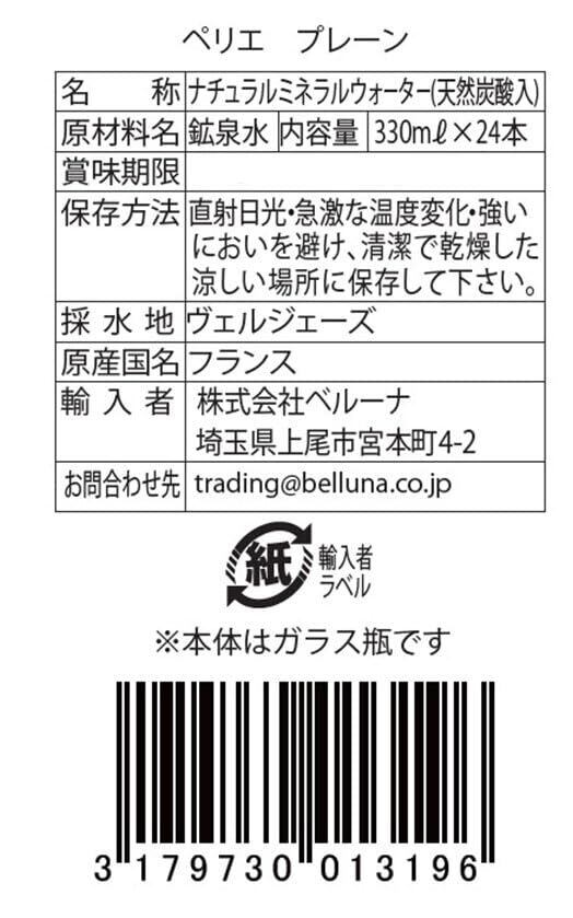 ペリエ (Perrier) プレーン 炭酸水 瓶 330ml 「直輸入品] ×24本