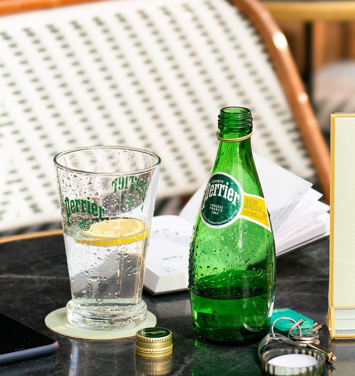 「ペリエ」の水源地は、南フランスのヴェルジェーズ。はるか昔、ピレネー山脈の造山活動による大きな地殻変動が起こりました。 その時にできた断層や亀裂により、炭酸ガスを含む地層と地下水の層が偶然に出会い、誕生した炭酸水。硬度約390㎖(プレーン)の硬水です。