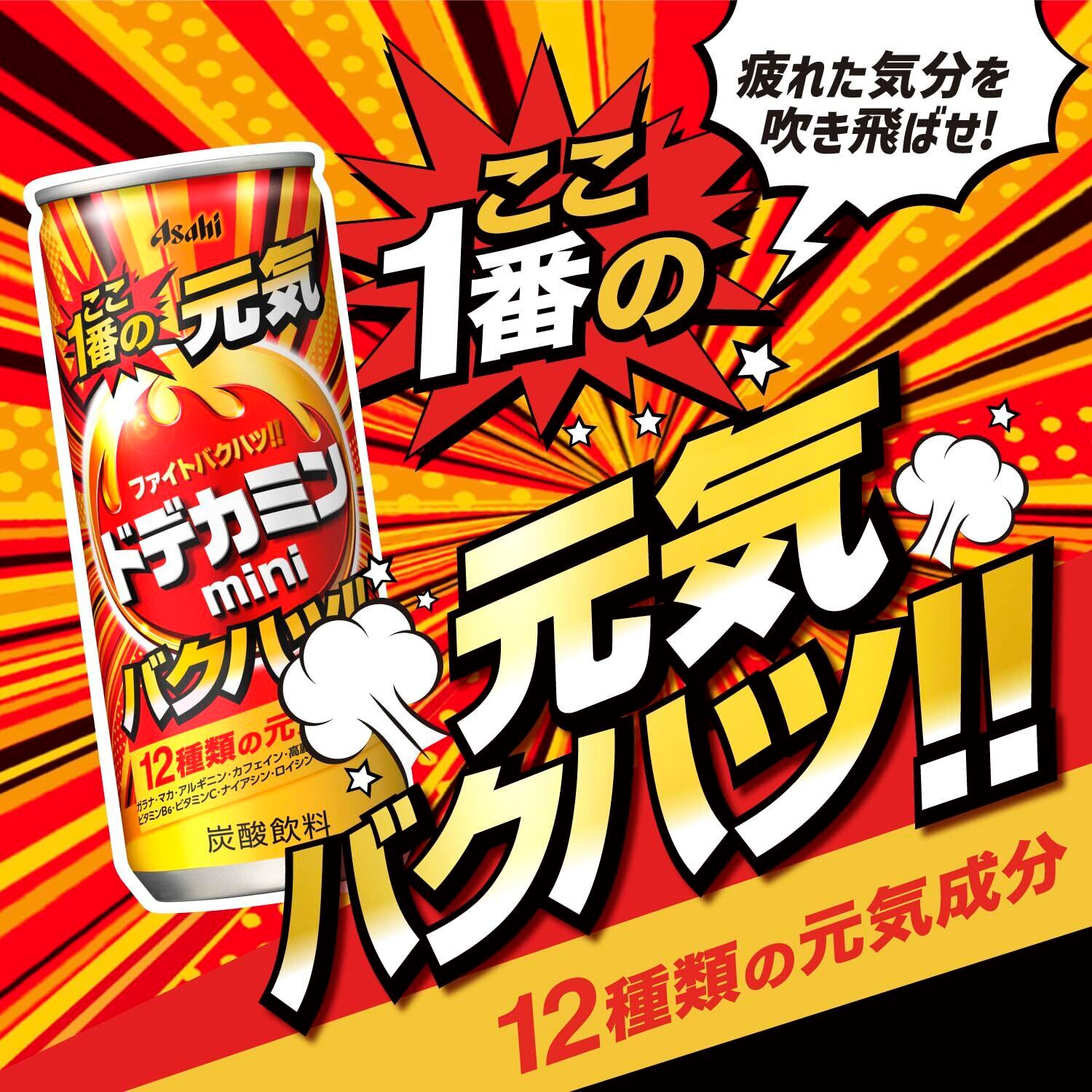 元気なブレンドと強炭酸の刺激で疲れた気分を瞬間的に吹き飛ばすエナジー炭酸飲料。