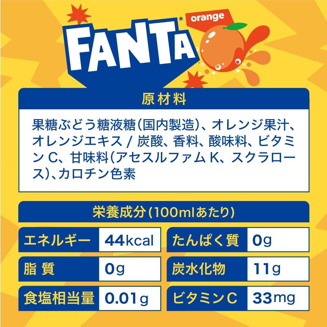 原材料:果糖ぶどう糖液糖、オレンジ果汁、オレンジエキス、炭酸、香料、酸味料、ビタミンC、カロチン色素、甘味料(アセスルファムK、スクラロース)