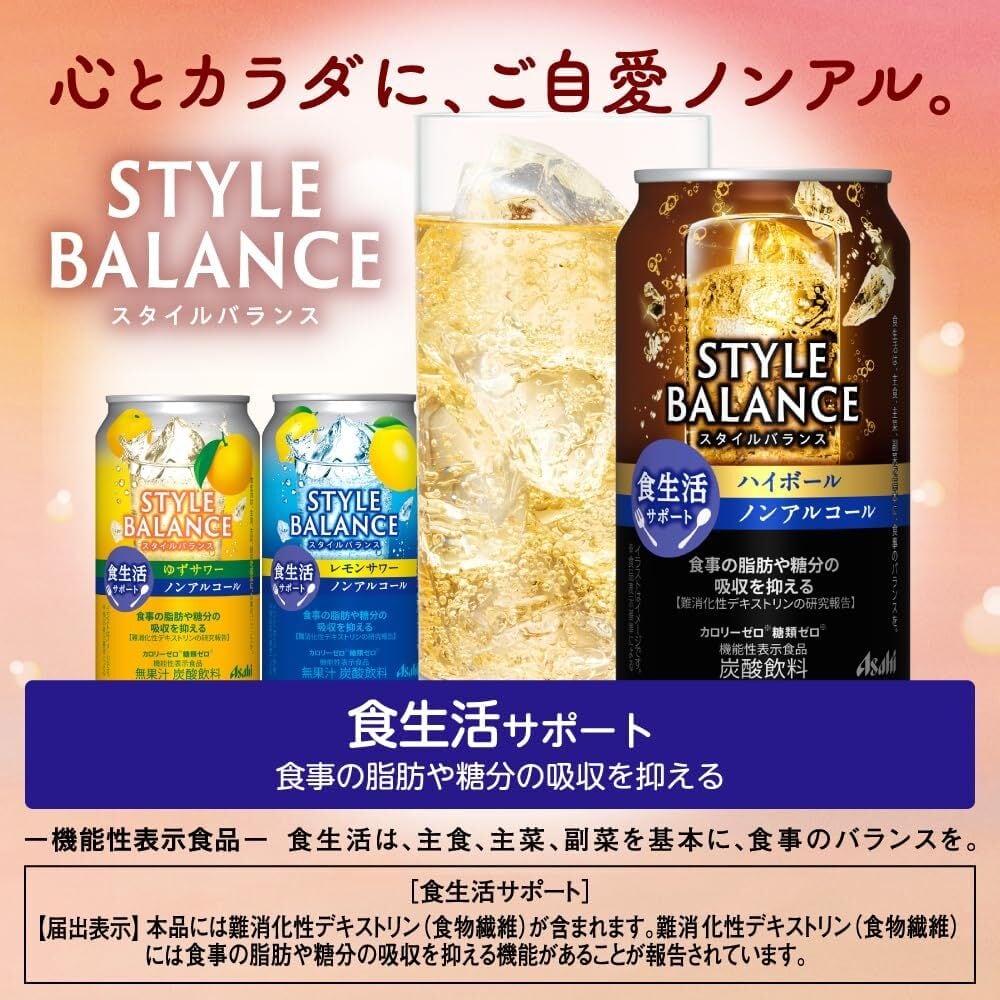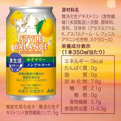 アサヒ スタイルバランス 食生活サポート ゆずサワー [機能性表示食品] [ ノンアルコール 350ml×24本 ] 350ml×24本