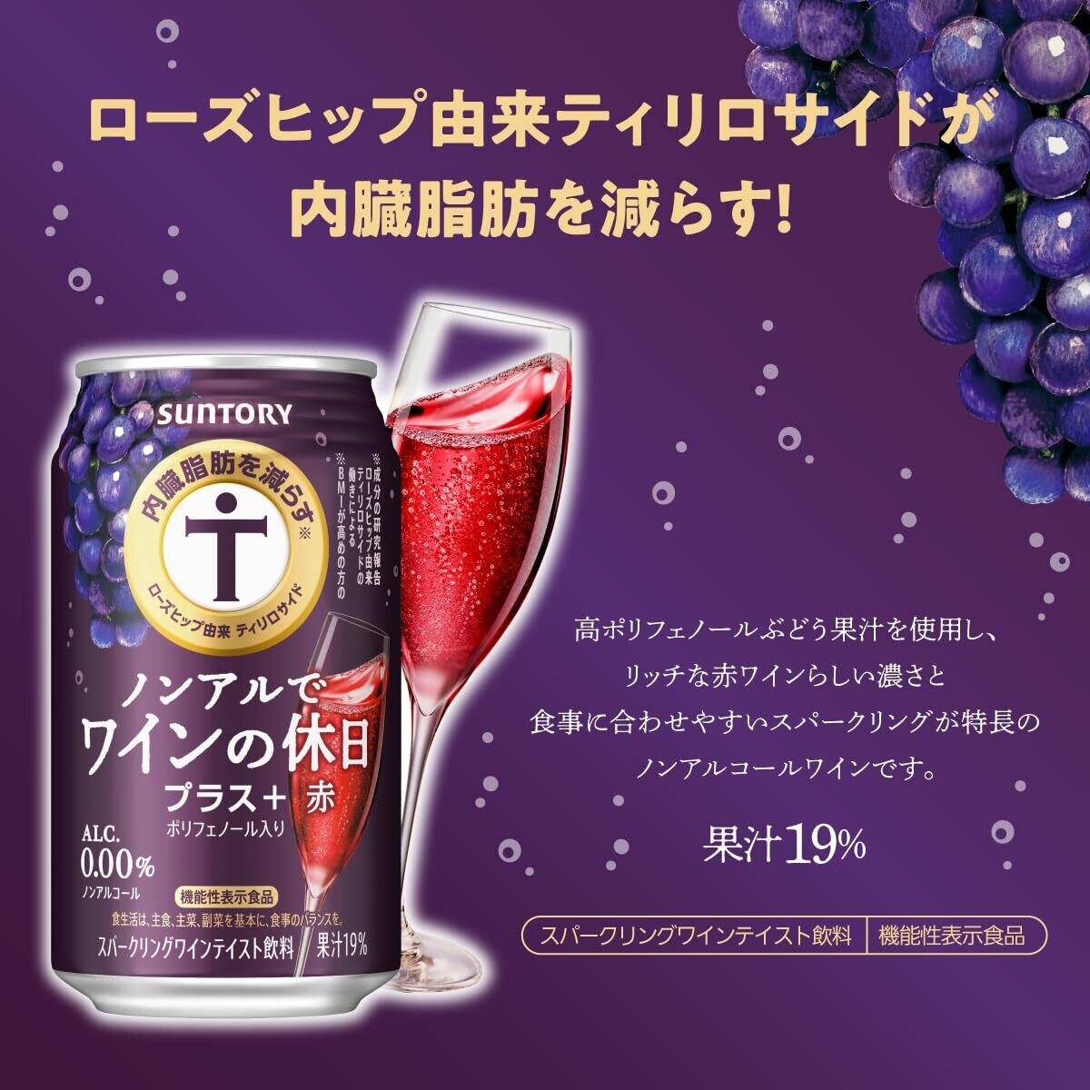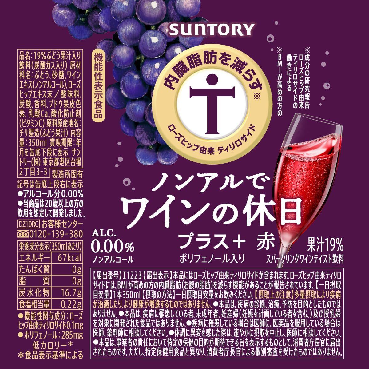 ノンアルでワインの休日 プラス+ 赤 350ml×24本 [内臓脂肪を減らす ポリフェノール入り][スパークリングワインテイスト ノンアルコールワイン]