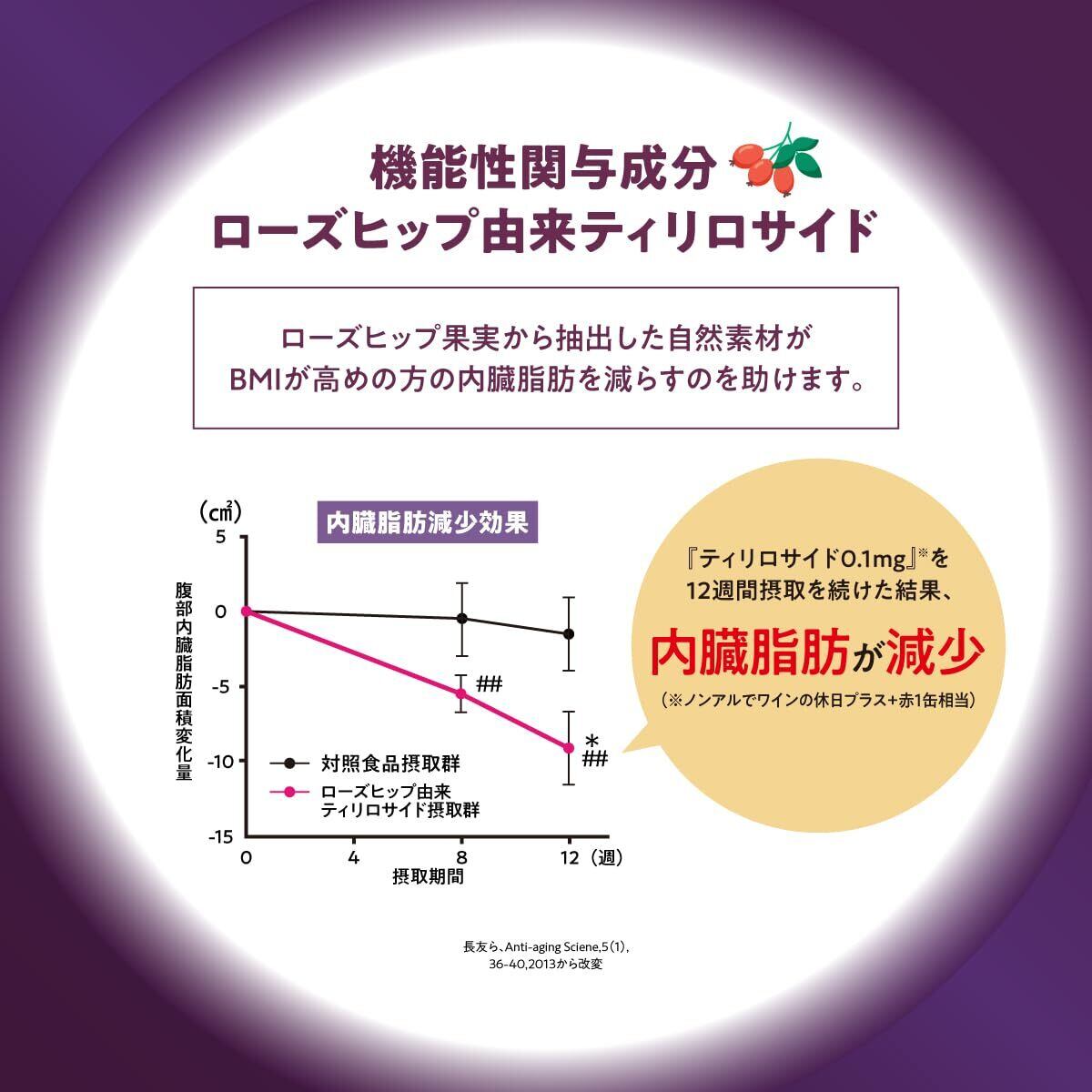 サントリー「ノンアルでワインの休日」より、(プラス+赤)が新登場。高ポリフェノール果汁を採用し、本格的な赤ワインらしい濃さで、食事の相性、飲み切りやすさを意識したノンアルコールスパークリング。パッケージは、健康機能を想起させるアイコンを正面に配置し、機能系ノンアルであることを表現。また、背景色には濃紫を採用し、中味の濃い凝縮感を表現しました。ローズヒップ由来ティリロサイドの働きにより、BMIが高め※の方の内臓脂肪を減らす、濃くリッチなおいしさと機能が両立したノンアルコールワインです。※BMI25以上30未満