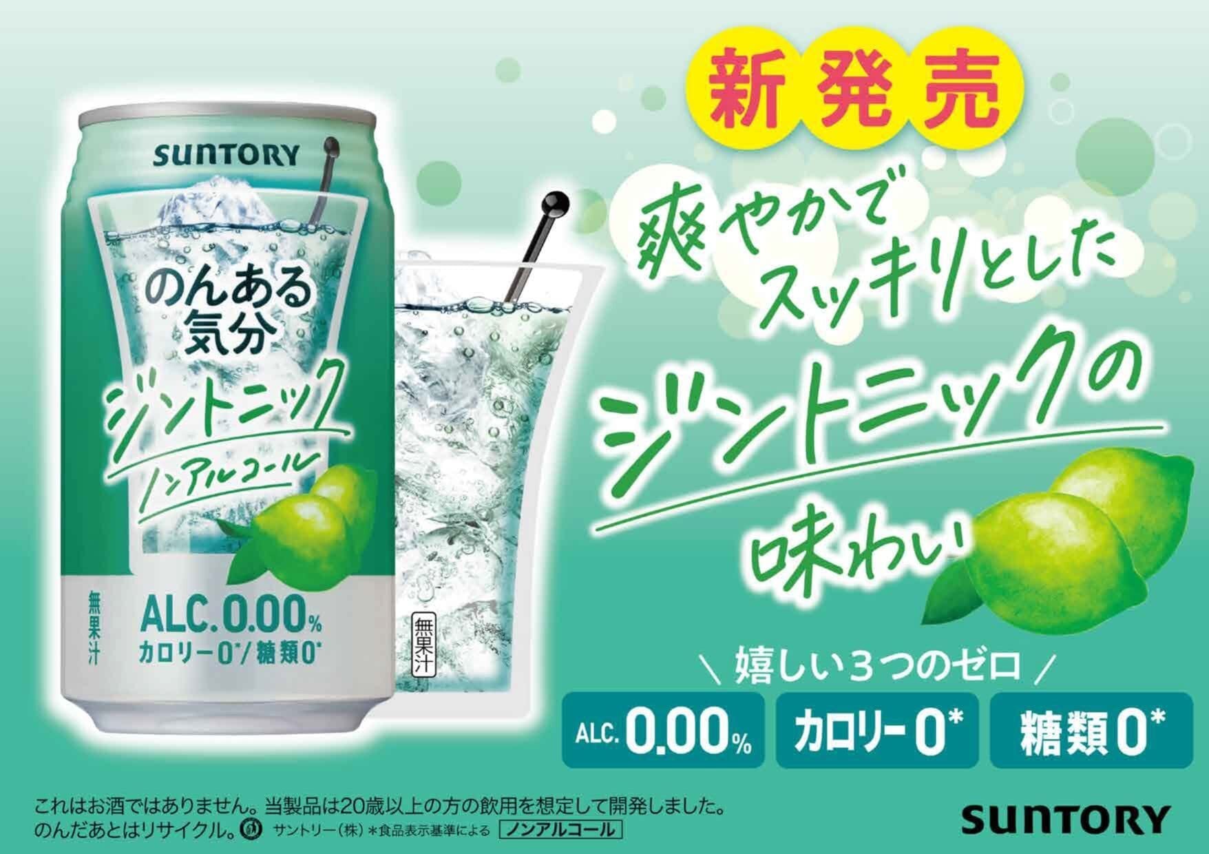 酔わずに気軽にお酒気分が楽しめるサントリー「のんある気分」から、新定番(ジントニック)が登場。サントリー独自の「リアルテイスト製法」で、ノンアルコール飲料でもジントニックのような本格的な味わいを実現。ジンとライムの爽やかな香り、トニックのほのかな甘みとキリッとした苦味でスッキリ飲みやすい味わいに仕上げました。さらに、うれしい「カロリーゼロ(※1)・糖類ゼロ(※2)」を実現。※1 食品表示基準に基づき、100mlあたり5kcal未満を「カロリーゼロ」としています。※2 食品表示基準に基づく。
