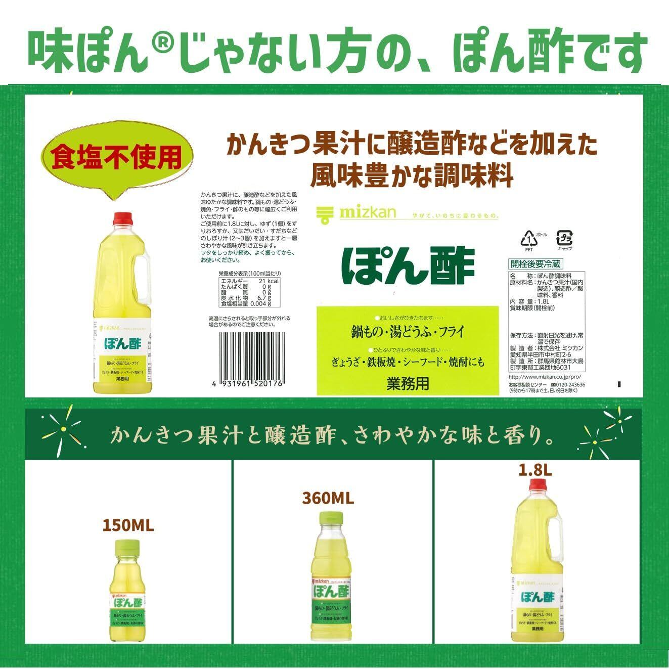 ミツカン ぽん酢(ペットボトル) 1.8L ポン酢