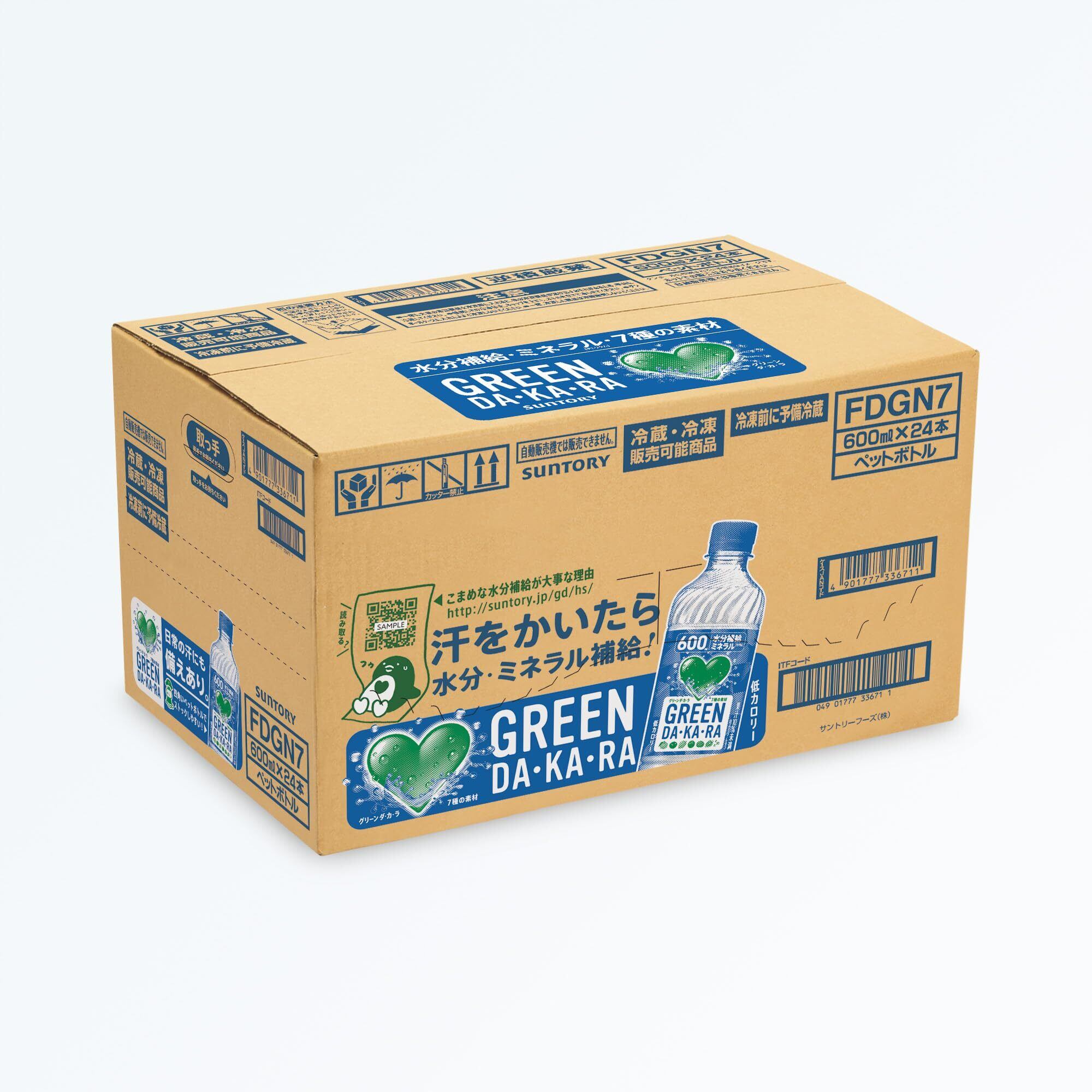 サントリー グリーンダカラ スポーツドリンク ペットボトル (冷凍兼用) 600ml×24本は、素材由来の自然な味わいで、カラダにうれしいすっきり果実の水分補給飲料です。日常生活やスポーツシーンでの熱中症対策設計(食塩相当量0.1g/100ml)と、水分補給に適した効率的な浸透圧設計(カラダと同じ浸透圧)。 2012年の発売以来、多くのお客様にご好評いただいている味わいをベースに、よりすっきりとした後味になりました。500mlより100mlもお得な600ml。「熱中症対策飲料」※としても推薦の商品です。