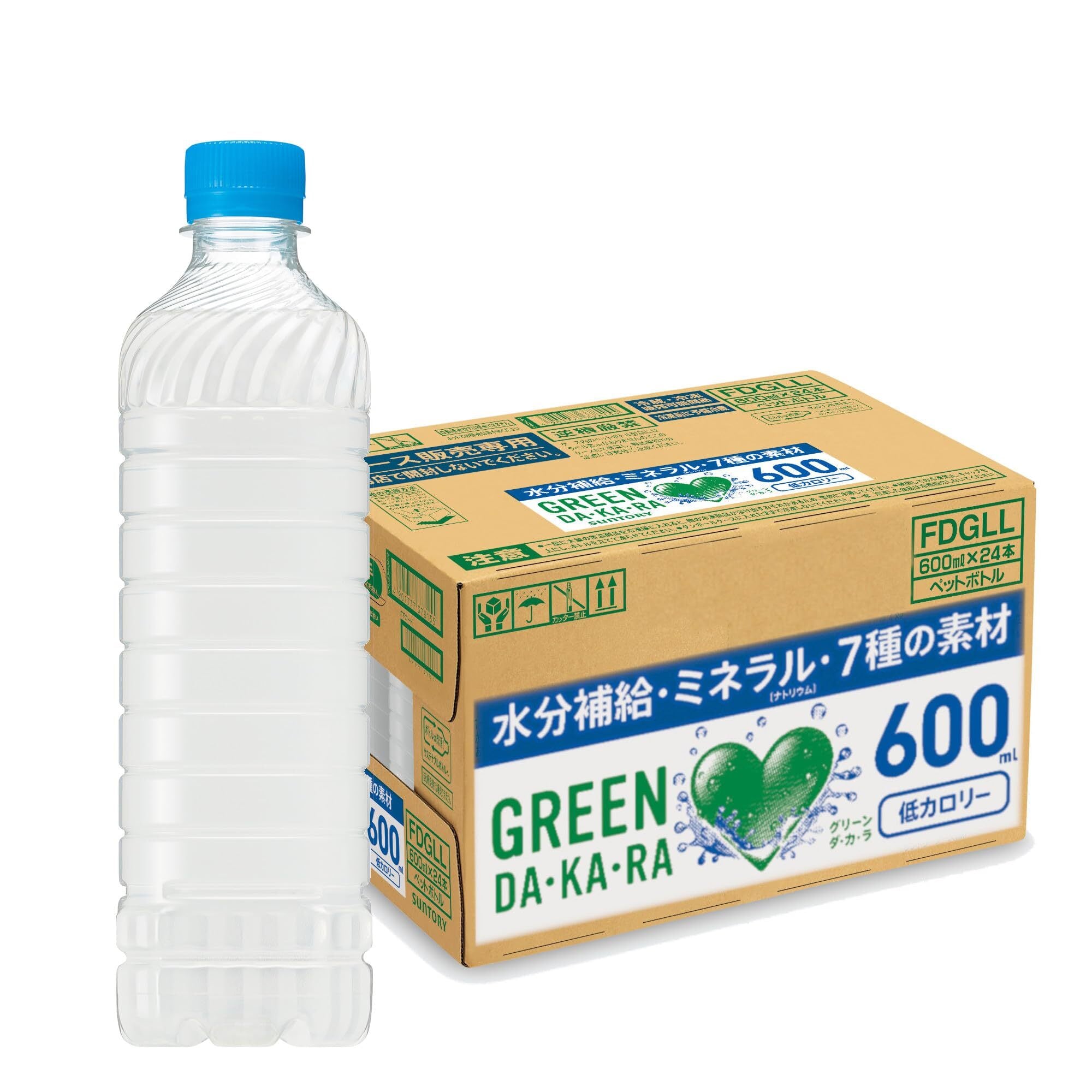 GREEN DA・KA・RA(グリーンダカラ) サントリー グリーンダカラ ラベルレス スポーツドリンク ペットボトル (冷凍兼用) (熱中症対策) 600ml ×24本は、素材由来の自然な味わいで、カラダにうれしいすっきり果実の水分補給飲料です。日常生活やスポーツシーンでの熱中症対策設計(食塩相当量0.1g/100ml)と、水分補給に適した効率的な浸透圧設計(カラダと同じ浸透圧)。ラベルをはがす手間がいらないラベルレス商品です。