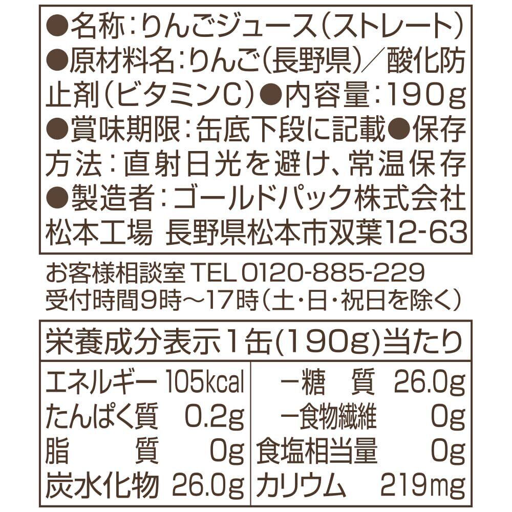 ゴールドパック ストレート 信州・安曇野りんごジュース 190g×30本