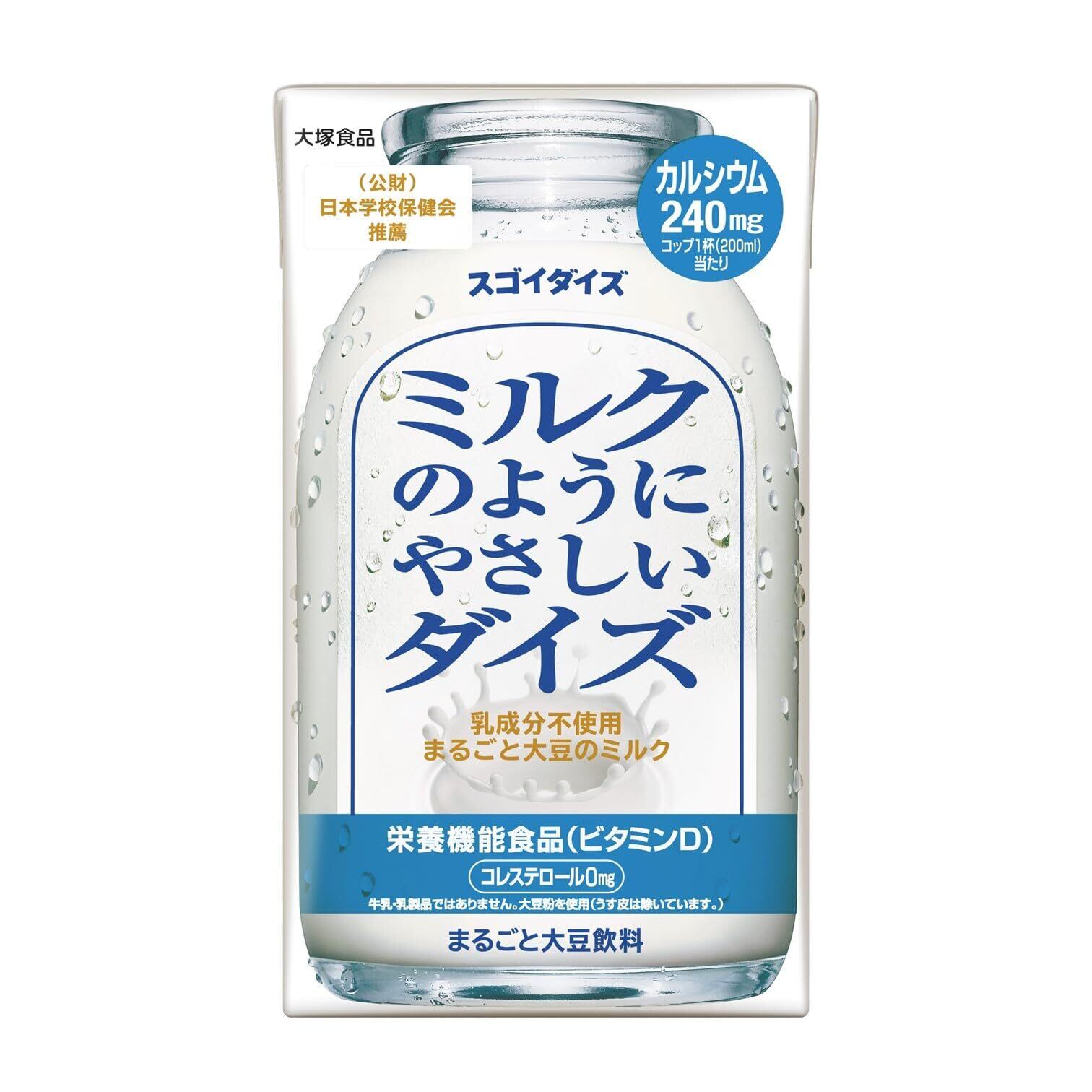 まるごと大豆飲料にカルシウムをプラスし、ミルキーな味わいに仕上げました。乳成分不使用です。栄養機能食品(ビタミンD)。常温保存可能品。 濃度の高い大豆飲料です。他の大豆食品でアレルギー症状が出ない方でも、まれに発症例がありますので、初めての飲用の場合は少量からの試飲をおすすめします。特に花粉症やアレルギー体質の方はご注意ください。