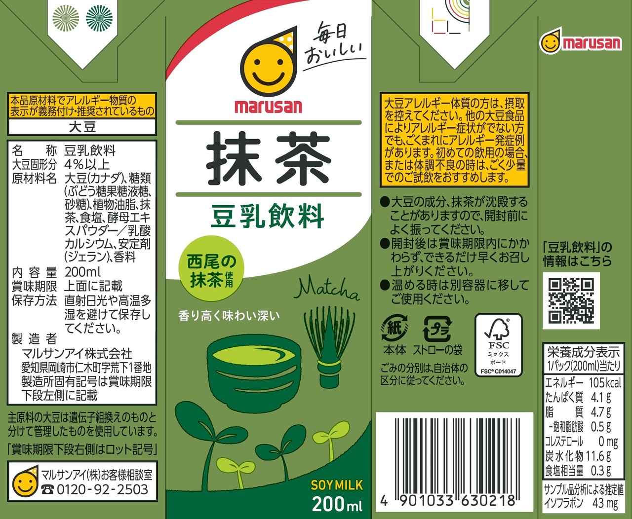 本場「西尾」の抹茶をブレンドしたおいしい豆乳。毎日飲んでも飽きない味わいです。