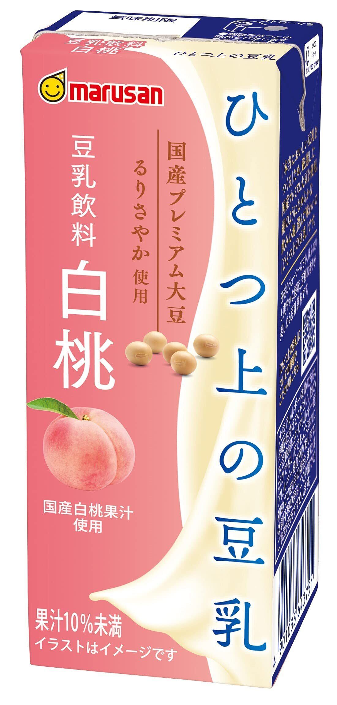 白桃のジューシーな甘みとほんのり爽やかな酸味、芳醇な香りを楽しめる豆乳飲料です。本当に美味しい豆乳をつくるためマルサンがこだわりぬいたひとつ上の味わいをご賞味ください。(大豆固形分2%)
