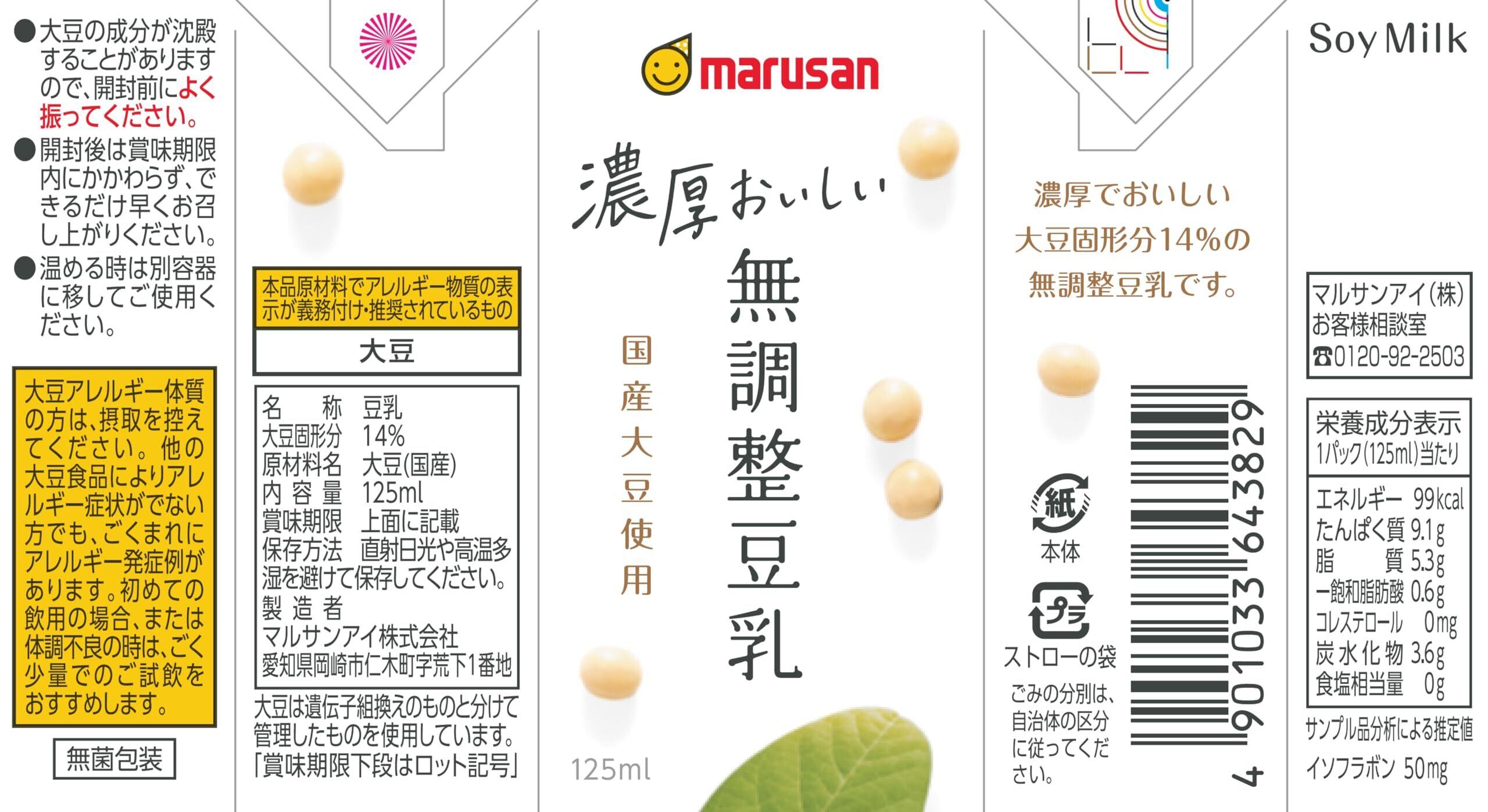 マルサン独自のオリジナル製法で作った大豆固形分14.0%の無調整豆乳です。厳選された国産大豆だけを使用した超濃厚な無調整豆乳だからこそ実現できた大豆の『まろみ』。大豆本来の甘みとコク、香りがやさしく広がります。125mlの小容量飲み切りタイプ。【Web販売限定商品】