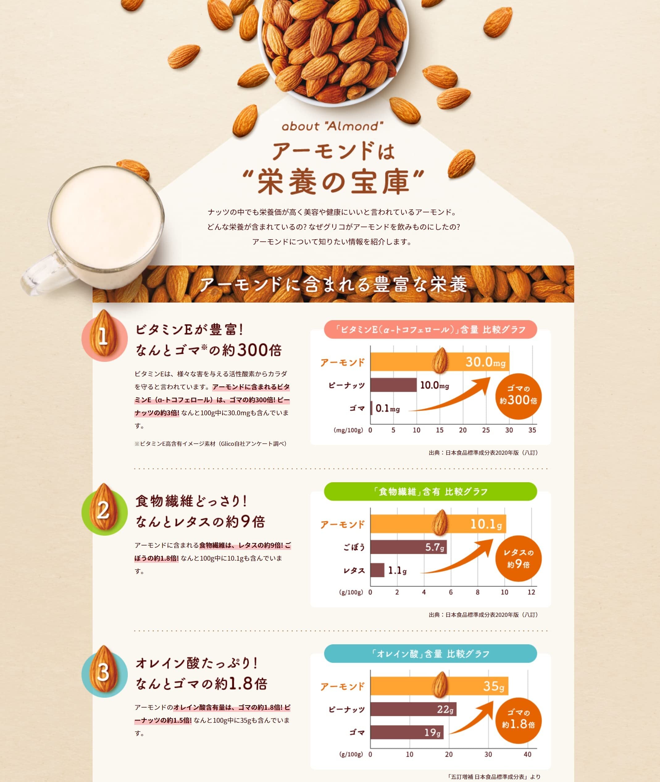 特別な原料 アーモンド、ビタミンE、カルシウム