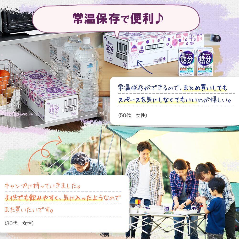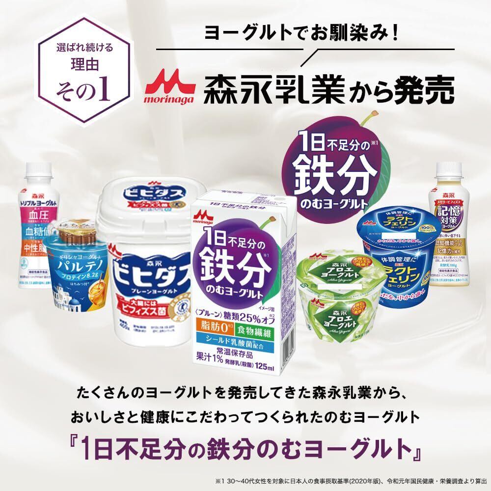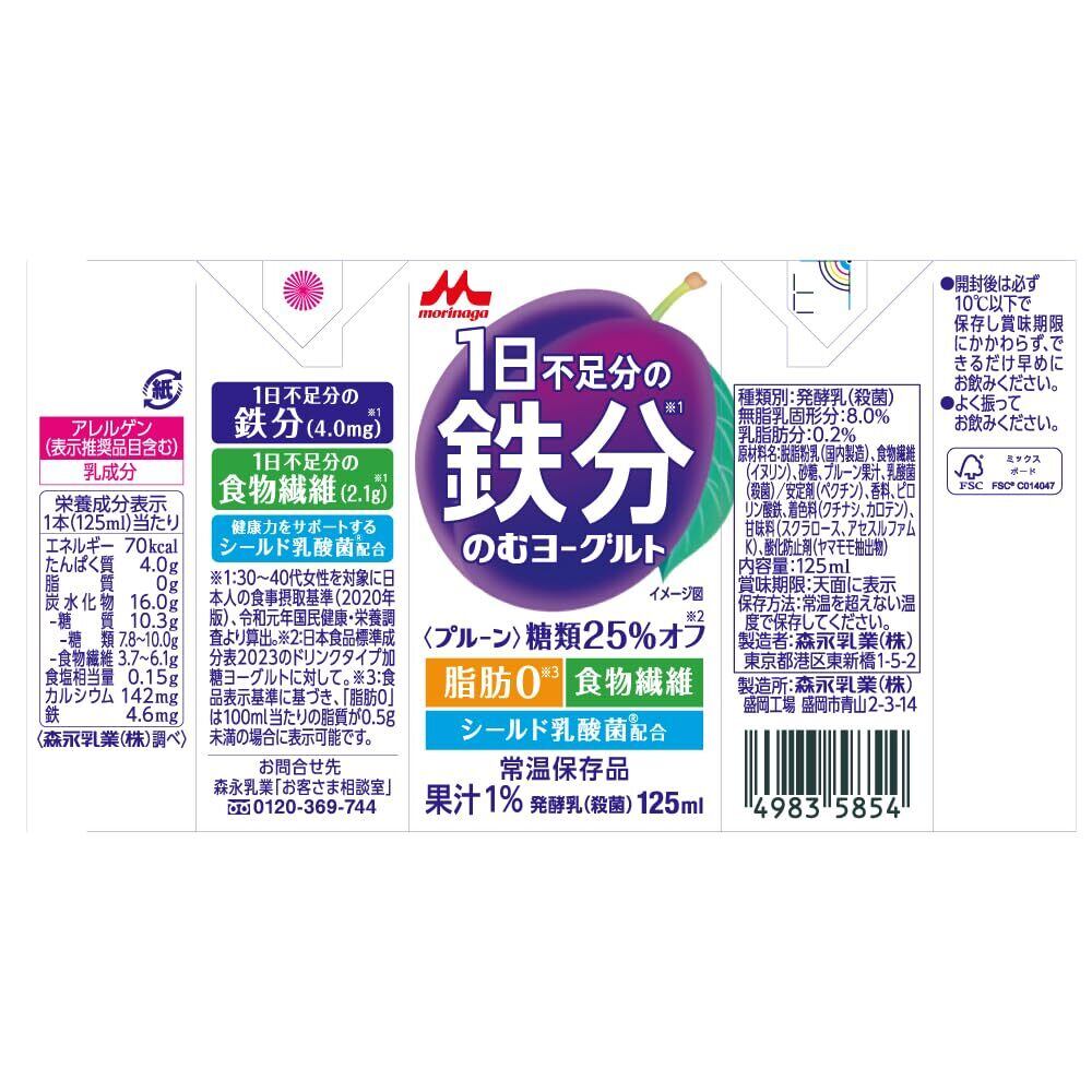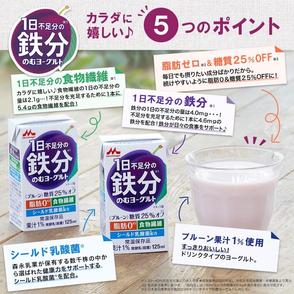 森永乳業 1日不足分の鉄分 のむヨーグルト プルーン 125ml 24本セット |糖類25%オフ 脂肪0【常温保存品 鉄分 食物繊維 乳酸菌配合】ケース販売