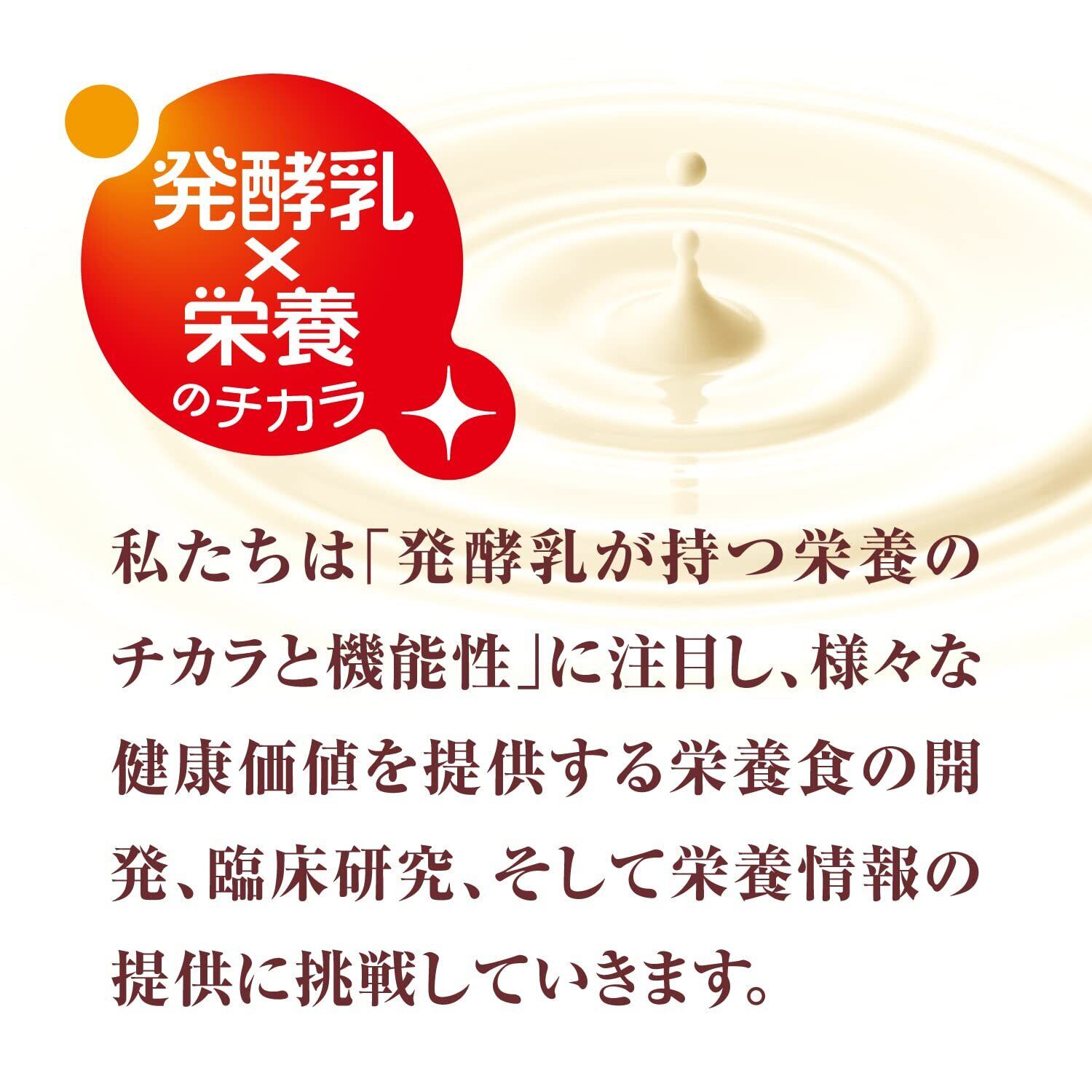 液状デキストリン(国内製造)、乳清たんぱく、乳製品、食用油脂(なたね油、パーム分別油)、難消化性デキストリン、ガラクトオリゴ糖、砂糖、食塩、酵母/pH調整剤、安定剤(増粘多糖類)、乳化剤、V.C、リン酸Mg、クエン酸K、リン酸Ca、香料、甘味料(スクラロース、ソーマチン)、グルコン酸亜鉛、V.E、硫酸鉄、ナイアシン、パントテン酸Ca、グルコン酸銅、V.B6、V.B1、V.B2、V.A、葉酸、ビオチン、V.K、V.B12、V.D、(一部に乳成分・大豆を含む)
